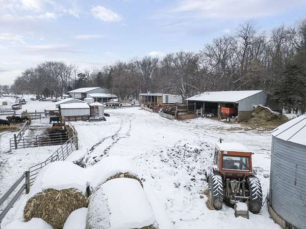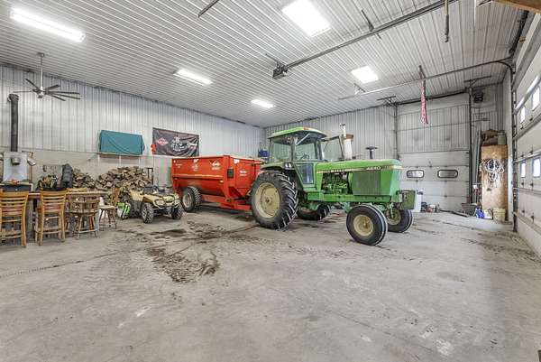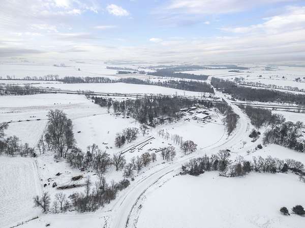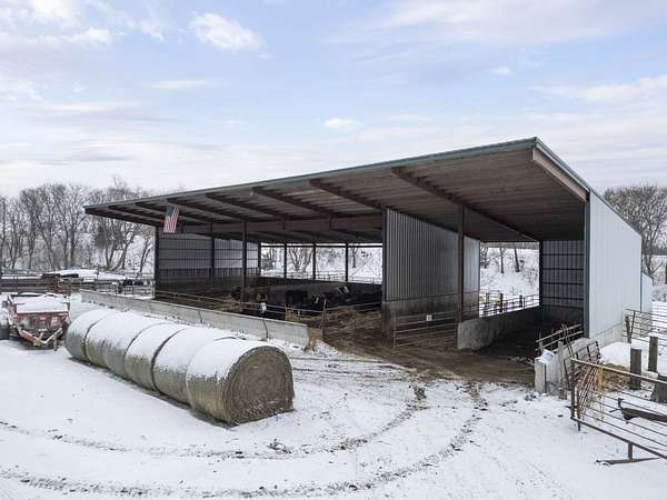 Livestock improvements include a 28' x 96' open-front cattle shed built in 2017, 96' x 105' concrete cattle yards, 93' x 150' bunker silo, 8,000-gallon liquid feed storage tanks, paddocked pastures, and six Cobett waterers. Consistent manure application has contributed to excellent soil fertility. The pasture and paddock areas all feature excellent fencing. A heated shop with office space and lofted living area adds versatility for farm operations.