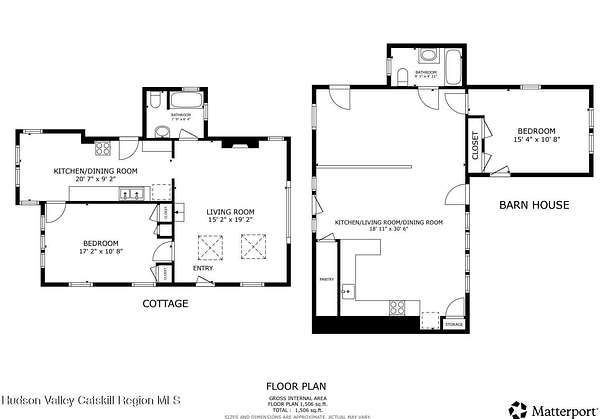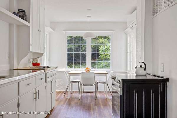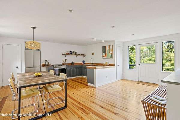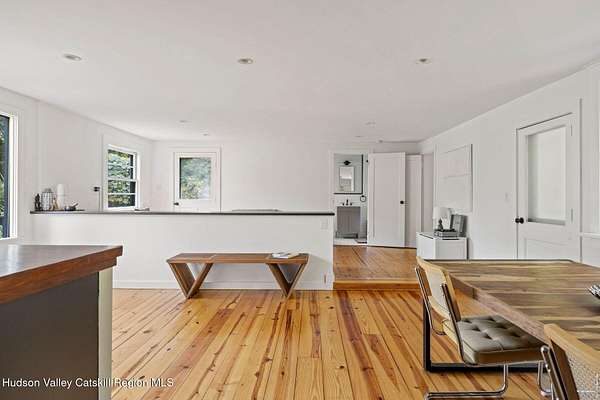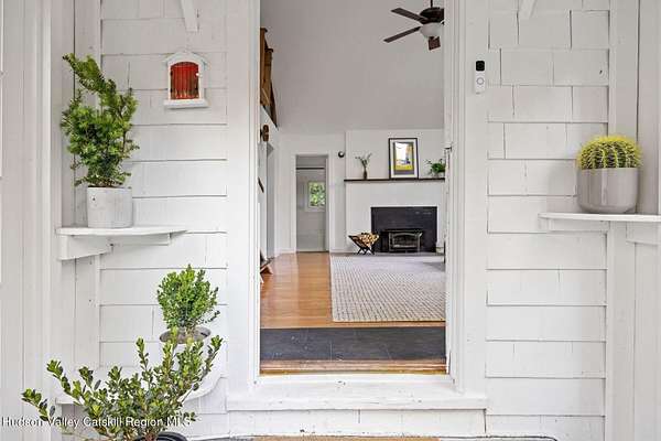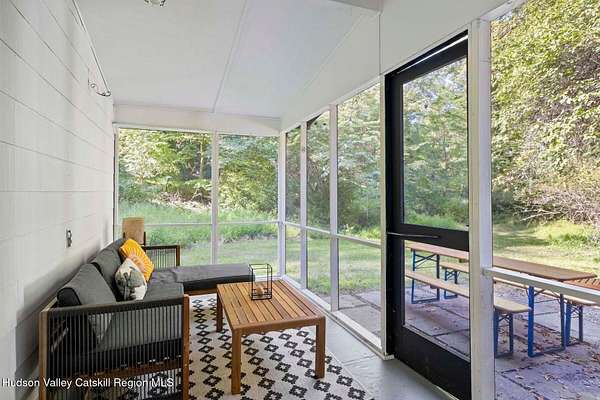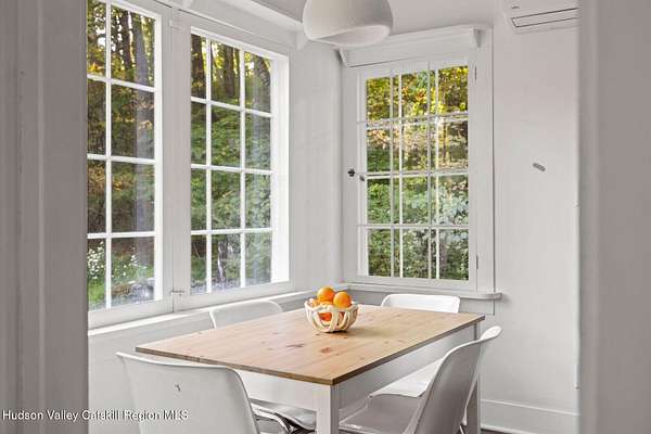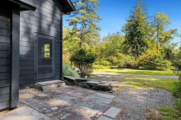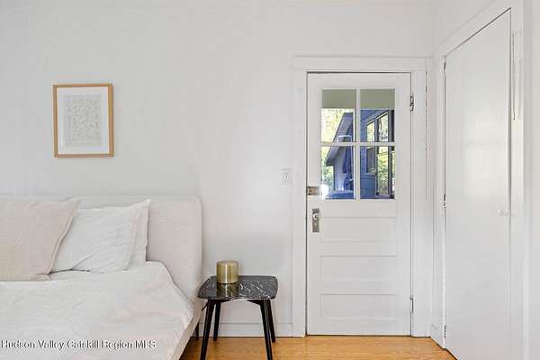 Tucked deep within a private woodland, a long, winding drive opens to a sunny meadow garden where two enchanting homes share a graceful circular drive. Thoughtfully sited for privacy and connection, the houses balance the romance of a bygone era with modern updates designed for today's country living. Built by celebrated artists and actors Wilna Hervey and Nan Mason, affectionately remembered as ''The Big Girls,'' both the cottage and barn home are rich in history and creative spirit. Live in one while hosting guests, extended family, or artists in residence in the other. Together, they create an ideal setting for gatherings or quiet retreats. Inside, you'll find polished wood floors, bright kitchens, and inviting living spaces. The barn home features a screened porch accessible from the bedroom and main living area, overlooking nature and a private fire pit. Though it presents as two stories, its main level is single-floor living, complemented by a spacious attic with potential for a loft, studio, or second floor. The second home, a cheerful white country cottage, greets you with a bluestone terrace, perfect for morning coffee, evening conversations, or meditations on nature. A tucked-away loft provides a cozy hideout for children or reading, while a classic Woodstock-style painter's window floods the living area with light and frames treetop views. The oversized bedroom offers sweeping garden and meadow vistas. The grounds on more than eight private acres invite exploration and potential subdivision. Both homes have undergone many improvements, including an EV charger, water purification, and new smart appliances. A whimsical old shed, structurally reinforced and ready for reinvention, awaits transformation into a studio, workshop, or garden house. Despite the property's secluded feel, you're just a short stroll to the Cub Market and Bearsville Theater complex, only four minutes from the heart of Woodstock. A 3D Walkthrough Tour is available in the digital Lookbook or by request from the listing agent.