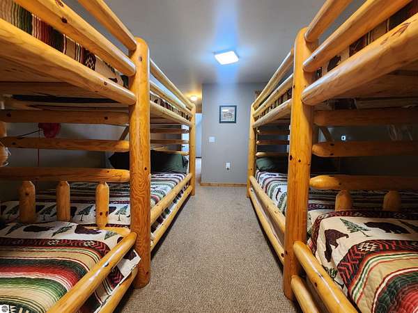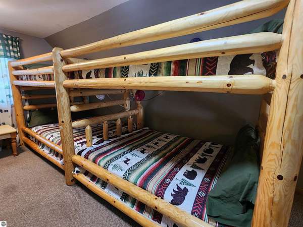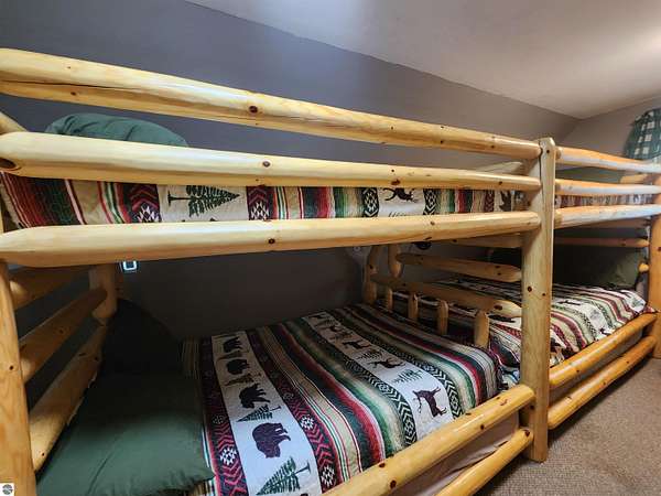 Escape to your turn-key private riverside retreat with this spacious and fully furnished 4-bedroom, 2-bathroom home, ideal for large gatherings, group getaways, or income-producing vacation rentals. Nestled on 220 feet of serene river frontage, this turnkey property offers modern comfort, rustic charm, and plenty of room to relax and play. Step inside to find a warm, welcoming space that accommodates everyone -- the bunk room alone sleeps 12, and the entire home comfortably accommodates up to 18 guests. An RV hookup on site makes it easy for camper friends to join in the fun. The bunk room bathroom makes the space even more functional for guests. Enjoy the peace of a private road. Outside, you'll find two lighted horseshoe pits, a freshly painted patio perfect for summer nights, and direct access to the river for fishing, floating, or simply soaking in the view. This home has been meticulously maintained with significant upgrades, including: a brand-new 4-inch artesian well (2024), new septic and drain field (2019), updated furnace and AC (2021) & freshly painted exterior! The property is being sold fully furnished, with only a few personal items excluded (such as snowshoes and paddles), making it truly move-in or rental-ready. Already popular on VRBO and Airbnb, weekends are often booked, giving you a head start if you're considering using it as an investment property.