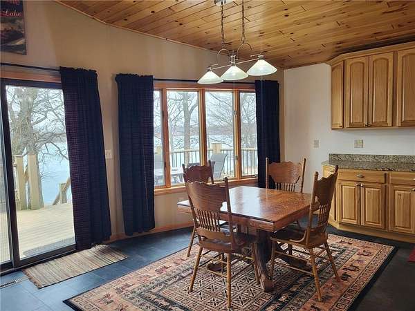 The home itself is designed to maximize your waterfront experience, featuring an inviting open floorplan with 4 bedrooms and 2 baths. Imagine waking up to breathtaking panoramic views from the wall of windows on the lakeside, which flawlessly integrate the stunning scenery into your living space. Step out onto the large composite deck and patio to enjoy spectacular sunsets and easy outdoor entertaining.