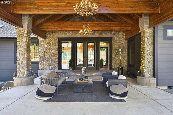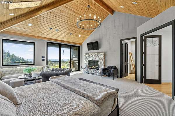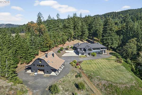 Perched on nearly 39 acres with breathtaking vistas extending to Saint Paul, this extraordinary estate offers an unrivaled blend of luxury living and natural beauty. The spectacular main residence spans over 8,600sqft, featuring 5 bedrooms and 6.1 baths-all fully remodeled with meticulous craftsmanship and no expense spared. Marvin windows and doors frame panoramic views throughout. The foyer atrium leads to a vaulted living room that flows seamlessly into the chef's gourmet kitchen, built around an imported AGA range and equipped with a substantial island and high-end appliances. Retreat into the mahogany-paneled library featuring a floor-to-ceiling rock fireplace-one of four throughout the home. The main-level primary suite boasts a private balcony and spa-inspired bathroom with soaking tub, walk-in shower, and premium Waterworks fixtures. Two additional ensuite bedrooms showcase Ann Sacks craftsmanship. The west wing offers a secondary main-level suite with private entrance, perfect for multi-generational living. Downstairs, an elevator connects to a large laundry room, bunk room furnished by Restoration Hardware, spacious family room, and dedicated gym with floor-to-ceiling windows. A farm-ready mudroom connects from the attached 4-car garage. The gated grounds feature a peaceful waterfall, orchard, pond, horse pastures, and extensive forested hiking and riding trails. The barn serves as versatile bonus space for a home office or artisan studio, plus 2-bedroom, 1-bath guest quarters, tackroom, 3 stalls, and ample shop space. An idyllic retreat for the discerning buyer seeking the ultimate in rural elegance, timeless craftsmanship, and world-class amenities.