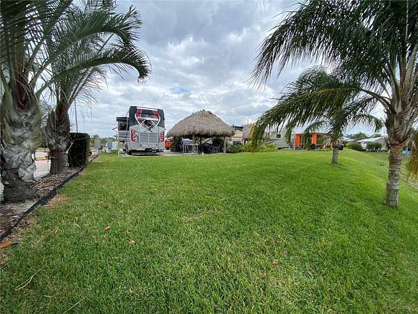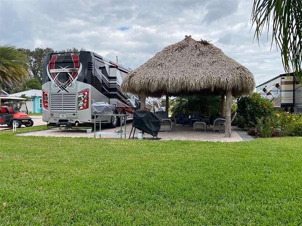 Attention Class A RV Owners - THE PERFECT RV RESORT AWAITS YOU! A large paved RV Pad with a huge 14 x 20 Tiki Hut in the gated 55 and over community of Bay Lake Motorcoach Resort. Ideal for full-time living, snowbird or investment/rental. It's an easy stroll to the resort's beautiful clubhouse which features a large pool, spa, exercise room, card/game room, banquet room, kitchen, craft and theater rooms. Your large lot can accommodate an excellent Casita if you want to build one in the future. The large Tiki hut is a great place to sit and relax, getting away from the Florida Sun. It's the perfect place to enjoy cookouts. This lot provides a great tropical view of palms and water in the pond with a view of lake Mattie, behind this private lot. This property is the perfect place to entertain all your friends. This broad pavered driveway has ample room to park your Class A or Super C up to 45 ft. motorcoach. RV/Marine lighted pedestal has 50 Amp, 30 Amp, 15 Amp and water connection next to a sewer connection, Don't miss the resort's unique boat dock for private use with a boat launch which provides access into Lake Mattie! Park your MOTORCOACH and relax in luxury. Conveniently located between Tampa and Orlando, this RV Pad offers you great space and a short drive to all central Florida and coastal attractions (20 miles to Disney and all Orlando parks, short distance to nearby airports and surrounding cities), plus golf, restaurants and shopping.