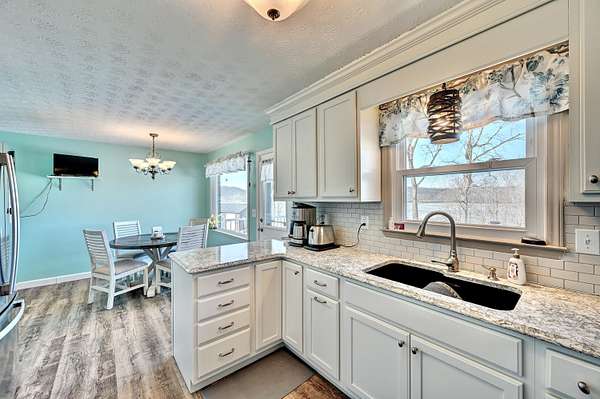 - Cathedral Ceiling(s), Ceiling Fan(s), Chandelier, High Ceilings, Stone Counters