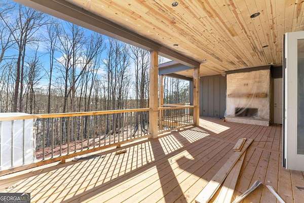 Stunning new construction home located in the highly sought-after Cherokee Bluff School District, perfectly situated on a private 3.19-acre estate-size lot with peaceful views behind the home. This custom build offers approximately 4,323 square feet under roof, including expansive covered porches designed for outdoor living. The main level features 10-foot ceilings, 8-foot solid core interior doors, a spacious owner's suite, vaulted fireside family room, and an open-concept layout ideal for everyday living and entertaining. The custom kitchen includes white cabinetry, a large center island finished in Sherwin Williams Iron Ore, walk-in butler's pantry, and quality finishes throughout. This home offers 4 bedrooms, 2.5 bathrooms, and a dedicated office, along with a game day porch with fireplace, perfect for year-round enjoyment. The unfinished terrace level offers approximately 2,313 square feet, already laid out and stubbed to mirror the main level with future bedrooms, bath, kitchen, and laundry providing incredible expansion potential. Additional features include a whole-house central vacuum system, Pella insulated windows, natural gas, city water, and septic system. The exterior showcases rough-sawn wood porch columns, a professionally landscaped yard with irrigation, high-end sod, and a 3-car side-entry garage. No HOA. Built with quality, attention to detail, and designed for both comfort and future flexibility. A truly impressive home that must be seen in person. Some Photos AI generated until completion of the home.