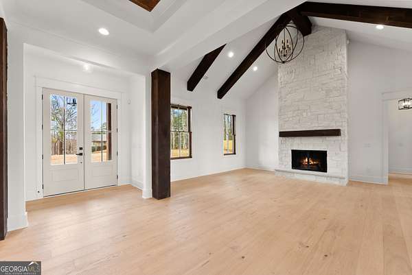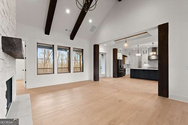 OWNER FINANCING / LEASE PURCHASE - 10% DOWN 6.5% INTEREST WITH A 35 MONTH BALLOON PAYMENT NO PREPAYMENT PENALTY. Stunning new construction home located in the highly sought-after Cherokee Bluff School District, perfectly situated on a private 3.19-acre estate-size lot with peaceful views behind the home. This custom build offers approximately 4,323 square feet under roof, including expansive covered porches designed for outdoor living. The main level features 10-foot ceilings, 8-foot solid core interior doors, a spacious owner's suite, vaulted fireside family room, and an open-concept layout ideal for everyday living and entertaining. The custom kitchen includes white cabinetry, a large center island finished in Sherwin Williams Iron Ore, walk-in butler's pantry, and quality finishes throughout. This home offers 4 bedrooms, 2.5 bathrooms, and a dedicated office, along with a game day porch with fireplace, perfect for year-round enjoyment. The unfinished terrace level offers approximately 2,313 square feet, already laid out and stubbed to mirror the main level with future bedrooms, bath, kitchen, and laundry providing incredible expansion potential. Additional features include a whole-house central vacuum system, Pella insulated windows, natural gas, city water, and septic system. The exterior showcases rough-sawn wood porch columns, a professionally landscaped yard with irrigation, high-end sod, and a 3-car side-entry garage. No HOA. Built with quality, attention to detail, and designed for both comfort and future flexibility. A truly impressive home that must be seen in person. Some Photos AI generated until completion of the home.
