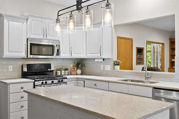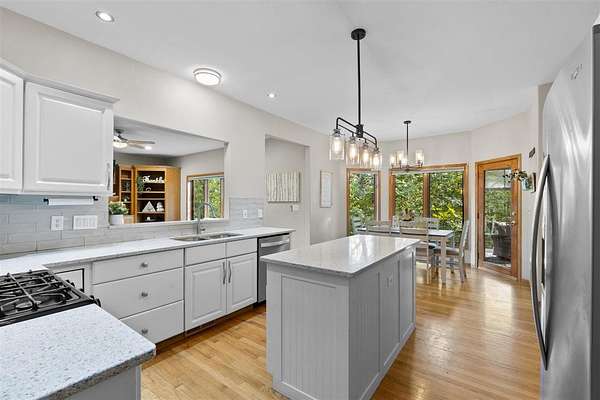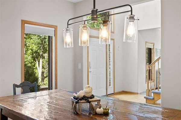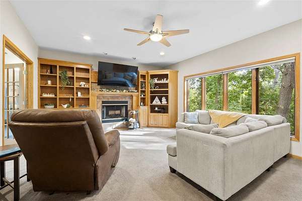 Discover your private retreat in the coveted Solon school district, situated on over 2 wooded acres just a short drive from both Cedar Rapids and Iowa City. This expansive home offers a true connection to nature, with large windows flooding more than 3,000 square feet of living space with natural light and providing tranquil, forested views from nearly every room. Modern updates meet cozy comfort in the eat-in kitchen, featuring quartz countertops (2023), a new dishwasher (2023), and a new refrigerator (2024). Curl up by one of two fireplaces, or enjoy a peaceful cup of coffee on the three season sunroom as you catch the morning sun. A spacious walkout lower level includes a family room and extra space for storage or a workout area. The attached three-car garage, with workshop space and new doors scheduled for mid-October, provides versatility and convenience