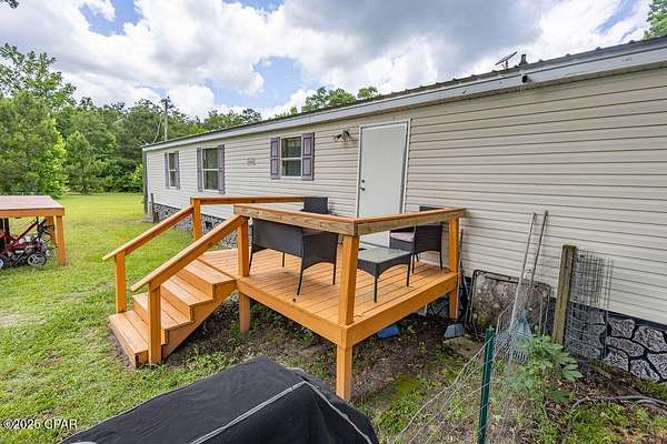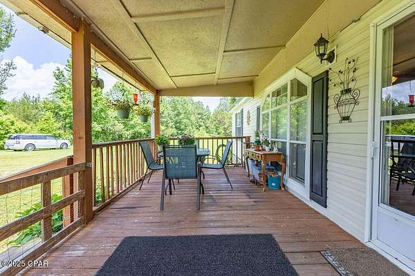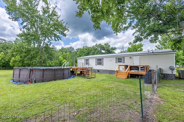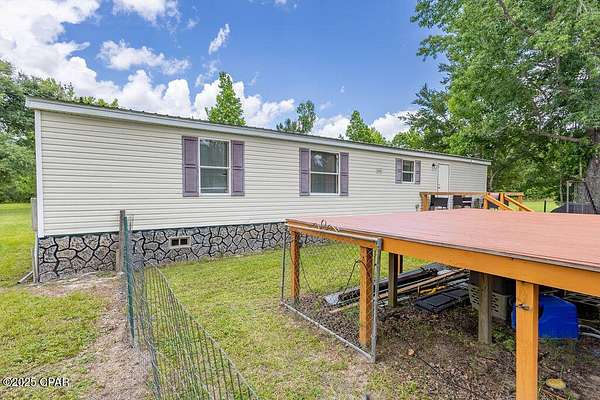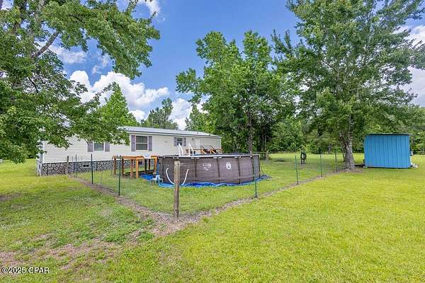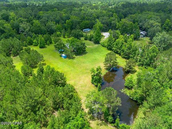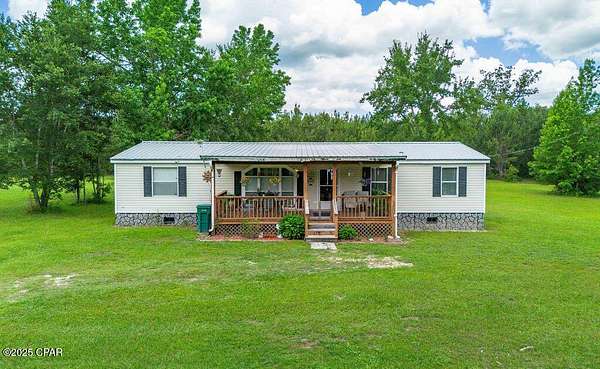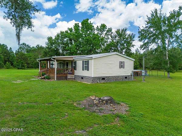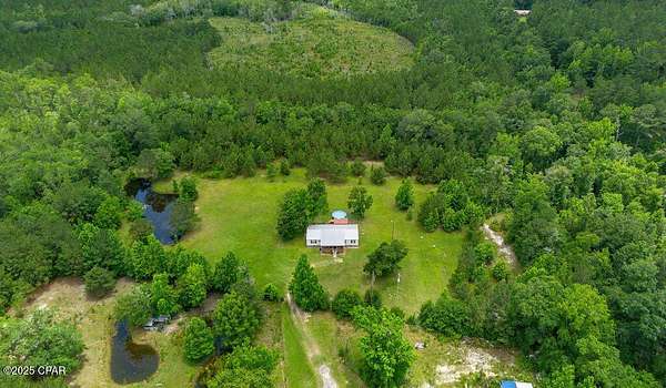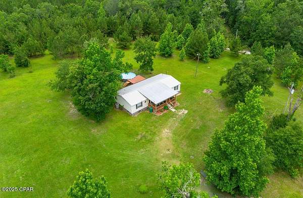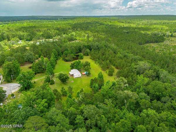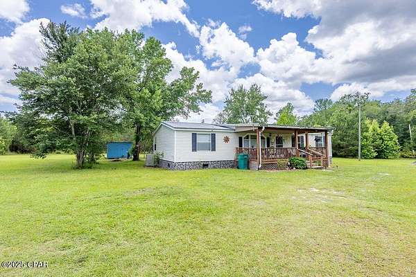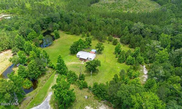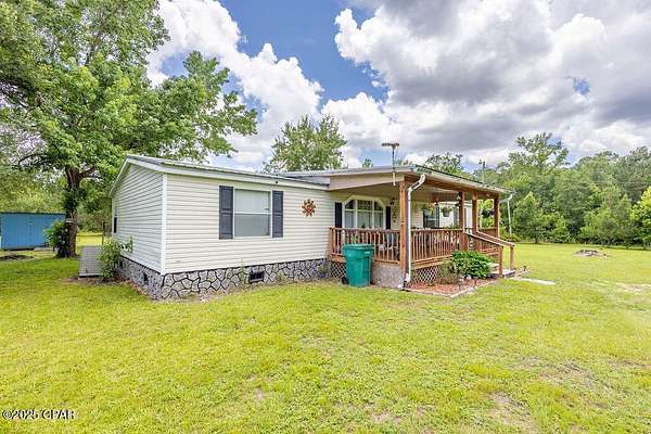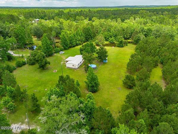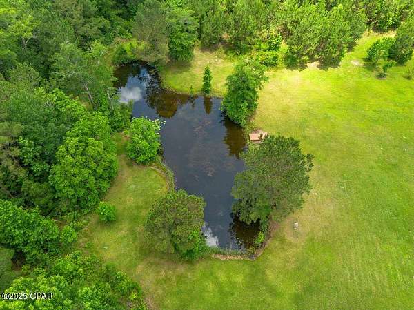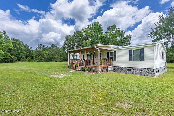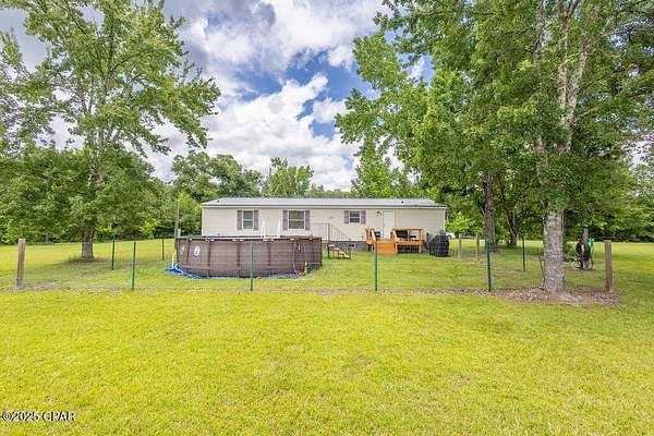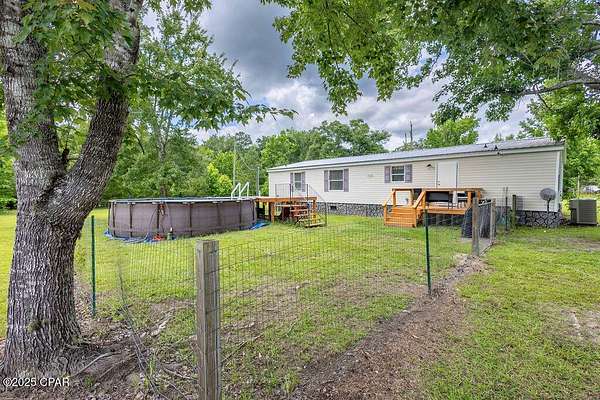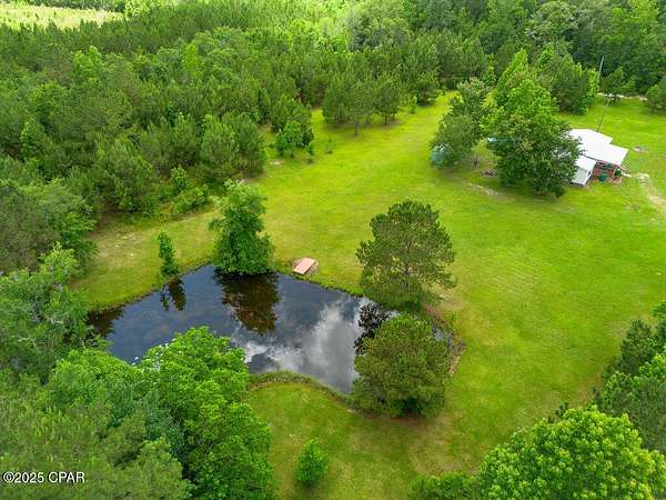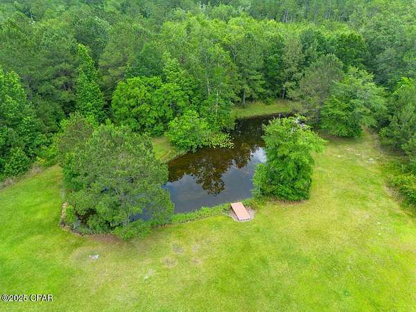 CURRENTLY UNDER CONTRACT - SELLER WILL CONSIDER BACK-UP OFFERS! Tucked away just down the street from Shady Grove Baseball Field, this charming home offers 5.5+/- acres of serenity with a spacious yard surrounded by beautiful woods--giving you that country feel while staying close to everything in town. With a split floor plan and an open-concept layout, the space flows effortlessly, giving everyone room to spread out and settle in.Inside, the split floor plan and open-concept layout make everyday living comfortable and easy. The kitchen features a center island that doubles as a breakfast bar, perfect for quick meals or casual gatherings. You'll also appreciate the new dishwasher and new water heater. Step outside to enjoy your morning coffee on the covered front porch, or unwind on the back deck overlooking your above-ground pool with fenced deck, a well-maintained pond, and an outbuilding for added storage or hobby space.This property truly checks all the boxes--wooded privacy, city utilities, high-speed internet, and a peaceful setting that still keeps you close to town. And the best part? You're just 35 minutes from the world's most beautiful beaches--making weekend getaways a breeze. Come see what makes this Vernon gem so special!