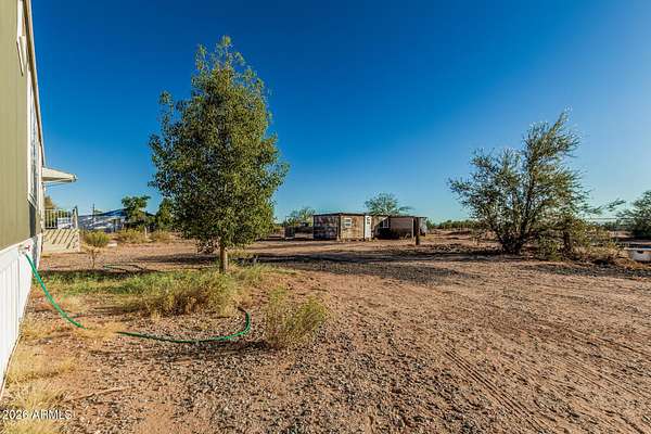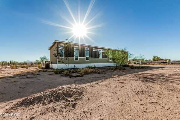 Charming manufactured home on an expansive 3.3-acre lot surrounded by natural desert landscaping & breathtaking mountain views! The bright interior features high ceilings, thick baseboards, & a welcoming living room w/built-in bookcases. Immaculate eat-in kitchen showcases white cabinetry, stainless steel appliances, a stylish tile backsplash, & ample counter space. Split main bedroom provides a bathroom with a relaxing soaking tub, step-in shower, & a spacious walk-in closet. Outdoors, the fully fenced property truly shines with a huge yard dotted with shade trees, horse corrals, & wide-open space ready for your vision. Enjoy peaceful country-style living! Make it yours today!