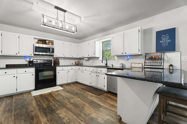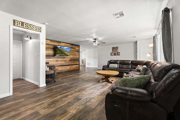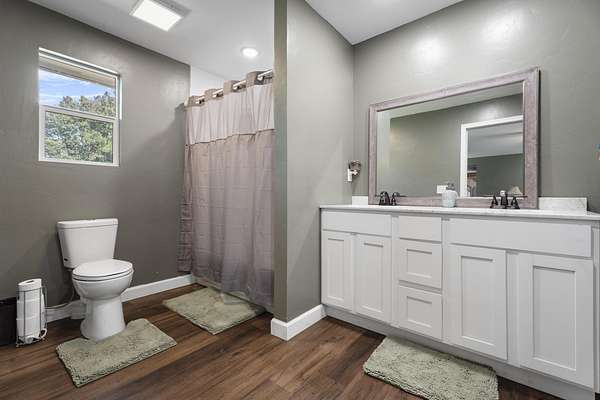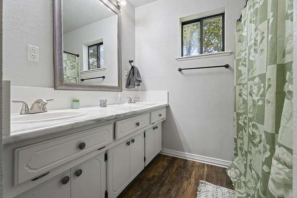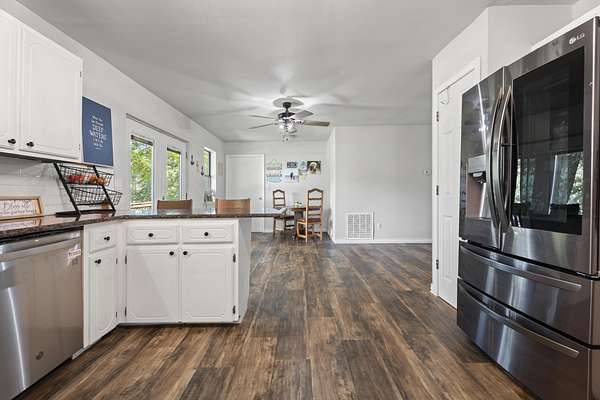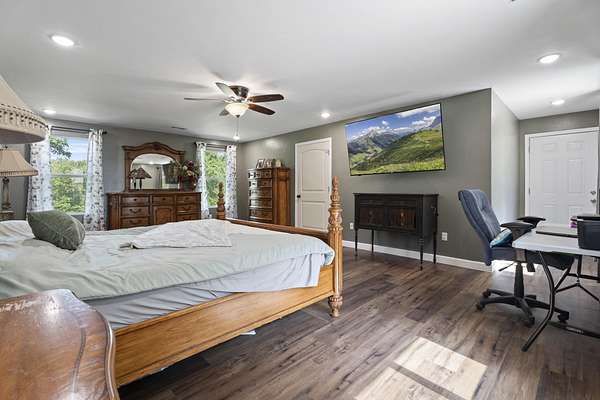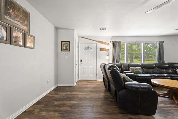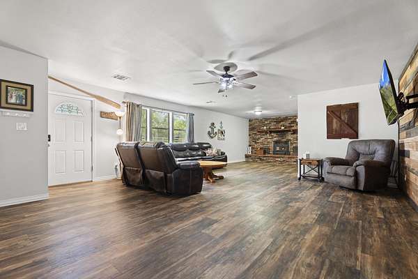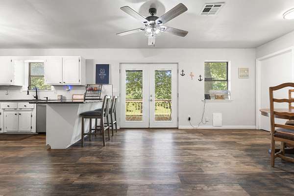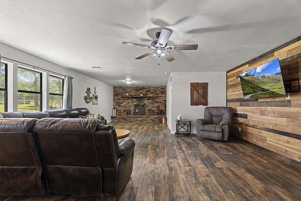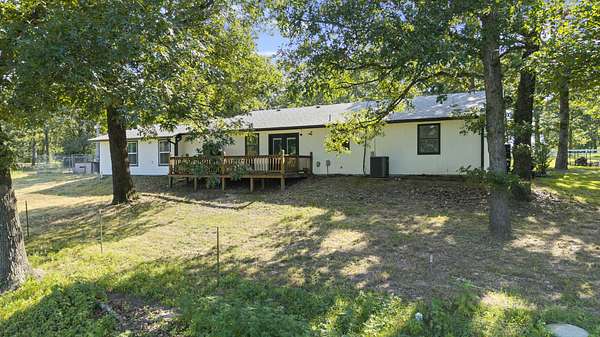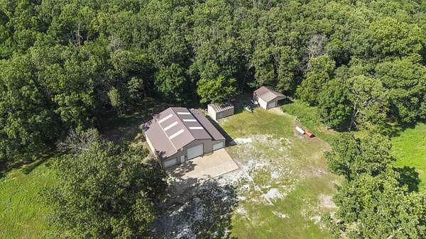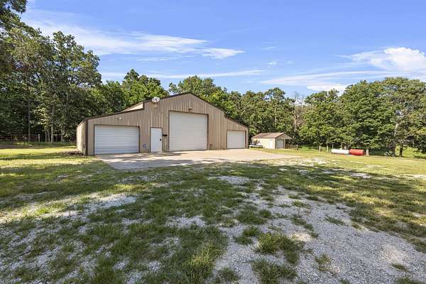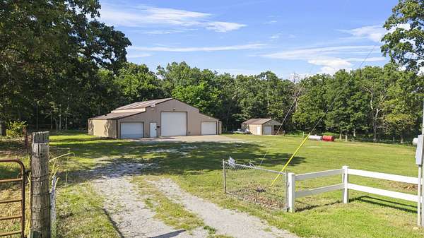 Country living just minutes from town. This 3 bed 3 bath home sits on 10 acres +/- outside of city limits with a great layout and several updates, including new HVAC, flooring, roof, and gutters. Inside, you'll find 2 primary suites plus a guest bedroom, spacious living area with a beautiful brick fireplace, large bedrooms, and a big kitchen with plenty of cabinet and counter space. Out back, enjoy the peaceful view of rolling hills from the deck. The property includes a 2700 +/- sq ft shop with an office and half bath, an additional 16x20 shop, and a 24x24 storage building. There's also a detached cabin with utilities already in place-perfect for guests, rental income, or extra space. Plenty of room to spread out, work, or build more if needed. This one's private, practical, and full of potential!