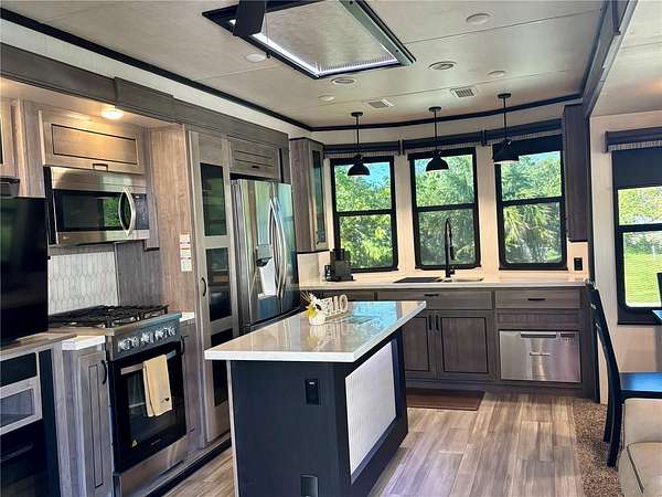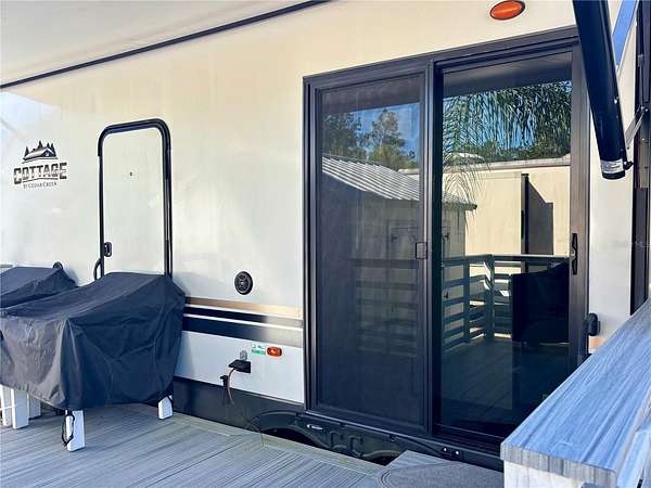 Welcome to Wilderness Town Park, a peaceful 55+ community surrounded by natural beauty and modern amenities. This beautifully landscaped lot features a stunning 2022 Forest River Cedar Creek Cottage 40CFK2 destination camper, offering the perfect combination of comfort, style, and convenience. The lot includes paver walkways, composite decking, and a storage shed equipped with a washer and dryer. The camper comes with a 7-year extended warranty that is transferable to the new owner, with four years remaining.