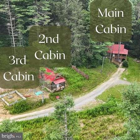 Est $1,899/moPRICE IMPROVED - MOTIVATED SELLER! Mountain retreat on 5.37 acres with panoramic views. Log cabin currently operating as a B&B offers rustic charm, open layout, abundant natural light, and a spacious porch. Second cabin ready to be finished, foundation in place for a third, plus a cleared build site at the top. Ideal for family compound, rental investment, or private getaway. Minutes to Snowshoe Resort and Cass Scenic Railroad. Rare opportunity with room to grow.