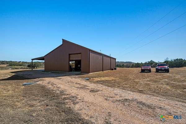 Escape to your own fully furnished Hill Country retreat on 56.273 fenced acres in Stonewall, just minutes from HWY 290, the Texas Wine Trail, multiple wineries and only 25 minutes from Fredericksburg. This property offers the privacy of a ranch with easy access to shopping, dining, tasting rooms and weekend fun. Schumann Lake, a private 26-acre watershed reservoir shared by a few neighboring owners, is on site, with approximately 11 acres of lake surface included. Current photos show existing water levels, and additional photos show the lake and creeks when full before drought conditions. Fresh gravel entrance, recent cedar clearing, native-grass shredding and ATV trails add to the easy, ready-to-enjoy ranch experience. Designed for gathering and making memories, the 2-story barndominium offers 4BR, 2.5BA and approximately 2,270 SF of living space, plus a 1,250 SF wraparound porch and fire pit. Inside, you'll find a vaulted great room with reclaimed wood plank walls, stained concrete floors, large view windows, open kitchen with stainless appliances, open shelving, oversized island and coffee bar. The downstairs primary suite connects to a walk-through closet with in-closet washer/dryer. Upstairs loft includes 3 bedrooms, full bath, generous storage and flexible guest space overlooking the great room while still offering privacy. Custom stair railing was built with added safety in mind. The barndominium also features 9 clerestory-style windows that bring in beautiful natural light. The attached party barn/garage is a standout feature with a 20' peak, 2 oversized garage doors, built-in bar, pool table, game stations, half bath and abundant storage-ideal for entertaining, hobbies or extra gathering space. Also included: 600 SF caliche-based pole barn, dock, on-site well, septic, sprinkler system, water softener, water heater, 2 HVAC systems, double-pane windows and 6" insulation in the living area. WILDLIFE EXEMPTION IN PLACE.