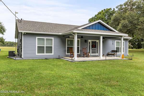 Custom built and barely lived in on 10 acres! So many upgrades to this craftsman style accented home with large front and back porches! The roof has 30 year architectural shingles & there are low maintenance aluminum soffits and 2x6 fascia. R-38 insulation in the ceiling and R-13 in the walls. Low E vinyl double pane 5' high windows, 36'' interior doors,10' trey ceilings in living room and primary suite with 9' ceilings throughout the remainder of the home. LVP flooring throughout except for ceramic tile in bathrooms and laundry room. Quartz countertops in kitchen and baths, soft close dovetail wood cabinets, walk in pantry & recessed lighting. Main bath has tub/shower combo while the primary has a walk in/roll in shower, two sinks, make-up vanity and linen closet. Large laundry room with utility sink. The home has a gas tankless water heater and is prewired/transfer switch for a generator. Back porch has plumbing & electric for a future outdoor kitchen. Don't miss this amazing home!