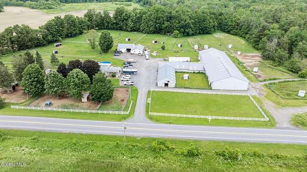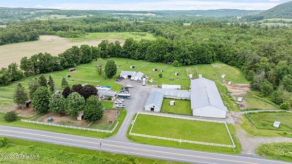 Sellers are MOTIVATED and ready for a quick closing! Calling all equestrians - bring your horses and your business! This exceptional 24-acre, 38-stall equestrian facility nestled in the Helderbergs is designed for all your boarding, training, breeding, or rescue needs. Features include feed, wash, tack, and viewing rooms, rubber-matted stalls and aisles, generous hay storage, and an attached 60x180 indoor arena with sand footing and mirrors. Enjoy a 75x150 vinyl-fenced outdoor arena and 26 paddocks, each with run-in sheds and room to expand if desired. A 30x40 shop/garage provides additional space for equipment storage and maintenance. The 2BR/2.5BA, 2,600+ sq ft ranch home with many updates offers flexibility to owner-occupy or utilize the 2BR/1BA in-law apartment for staff or property management. Cook family meals in the updated kitchen with new stainless steel appliances and granite counters. Enjoy holidays in the open concept living and dining room with gas fireplace and accent stone wall. Relax in the 4 season porch overlooking the farm and swim in the summer months in the above ground, salt-water pool. Many new amenities-see documents for full list. No showings without an appointment. Pre-qualified buyers only please.