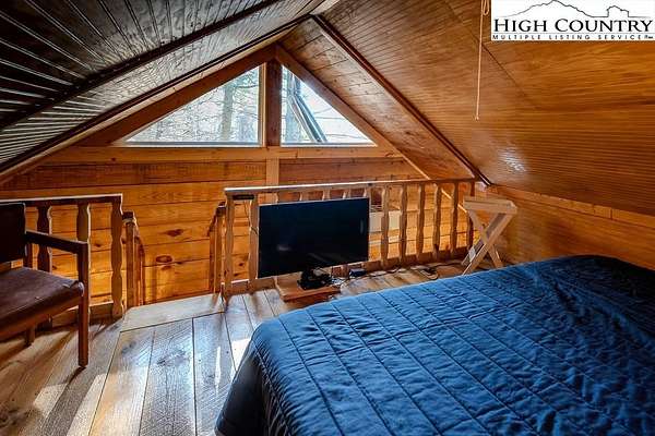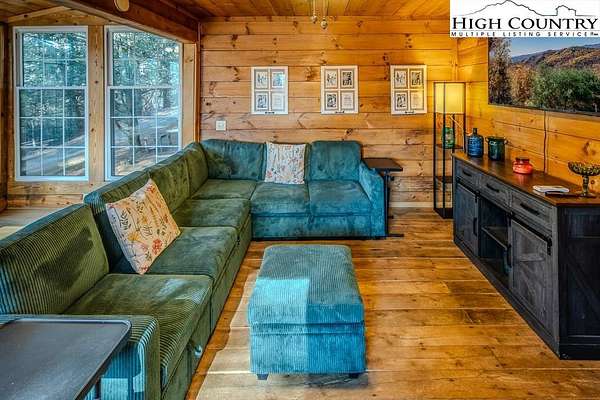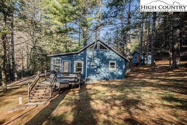A Mountain Escape with 10+ unrestricted land with cabin, stream and private pond Tucked into the serene Blue Ridge Mountains, this charming 1-bedroom, 1-bathroom cabin on Deer Ridge Lane offers a rare opportunity to own a fully furnished retreat surrounded by untouched natural beauty. This cozy cabin delivers warmth, character, and an enchanting connection to the outdoors. Step inside to discover beautiful original wood floors, floor-to-ceiling windows framing forest views, and a fully functional old-school wood burning stove that sets the perfect mountain mood. The new addition features a spacious living area with long windows overlooking the creek and forest canopy beyond. A mini-split system provides year-round comfort, while the tankless propane water heater ensures modern convenience. Outside is where this property truly shines. A magical creek winds through the land, a private pond glistens among the trees, and a newly refinished deck invites lazy afternoons. Gather around the brand new four-foot fire pit beneath a canopy of stars on the expansive patio area. With no property restrictions, there's ample room to expand, or build additional structures, or a family compound. The location places you near the Blue Ridge Parkway, Stone Mountain State Park with waterfalls, hiking, fishing and rock climbing and Grayson Highlands State Park known for scenic hiking and wild ponies and the historic New River for kayaking, tubing and fishing. Sparta's beloved summer music events, local wine cellar nearby, friendly neighbors, and peaceful atmosphere round out the experience. This cabin offers a peaceful mountain lifestyle surrounded by forest, water and wildlife. It's the perfect place to disconnect, enjoy the outdoors, sit by the fire pit under the stars, and experience the slower rhythm of the Blue Ridge Mountains.