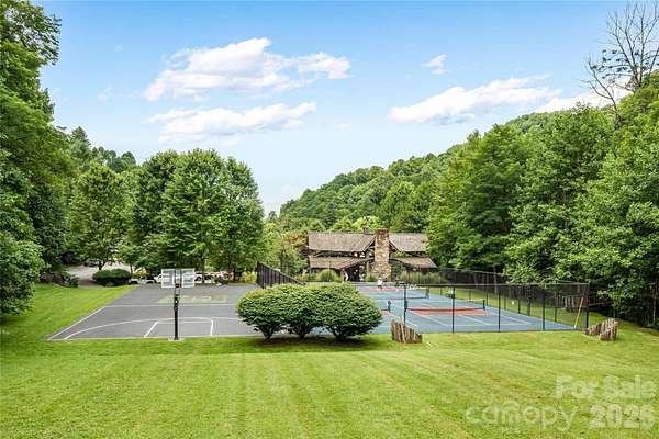 Positioned along the 13th fairway of the private, member-owned Wolf Laurel Country Club and set at an elevation of approximately 4,100 feet, this distinctive mid-century modern home offers a rare blend of architectural character, golf course frontage, and turnkey convenience within one of Western North Carolina's premier mountain communities. Designed to emphasize natural light and connection to the outdoors, the home features soaring vaulted ceilings, expansive walls of glass, and an open, flowing layout that brings the surrounding landscape into the living space from nearly every angle. The dramatic great room is anchored by a floor-to-ceiling stone fireplace and opens to an expansive deck overlooking the course. The open-concept design flows into the kitchen and dining areas, with multiple access points to expansive decking that extends the living space outdoors. A defining feature of the property is its unique golf course and mountain corridor view. The home's positioning captures a layered perspective-following the 13th fairway across the green, over the 14th tee box, and continuing down the 14th fairway toward the surrounding mountain ridgelines. While more focused in width, this alignment creates a dynamic and visually engaging setting rarely found in the community. With approximately 550 feet of golf course frontage, the property offers an exceptional sense of openness and space. The ~1.75-acre homesite is notably large for Wolf Laurel and features a gentle, usable topography-an uncommon combination at this elevation. Mature hardwoods, rhododendron, and native landscape elements provide a private, park-like setting with natural separation from neighboring homes, while small natural streams enhance the property's character and sense of tranquility. Offered fully furnished, the home conveys with all contents, providing a true turnkey opportunity for immediate enjoyment, second-home use, or continued vacation rental potential. Vacation rentals are not prohibited within the community, subject to applicable guidelines and restrictions. Well-proportioned bedrooms and flexible living areas provide comfort and versatility for both everyday living and hosting guests, offering a balance of openness and privacy. Located within the gated Wolf Laurel community, the property offers access to year-round recreation including golf, skiing at Hatley Pointe, dining at Smoke and Timber, and extensive hiking and biking trails, including access to the Appalachian Trail. Additional amenities may be available through optional memberships at the Wolf Laurel Country Club and Village Club. Wolf Laurel is approximately 27 miles from Asheville, providing convenient access to a vibrant regional destination known for its craft breweries, diverse dining scene, live music, and year-round entertainment. Combining architectural distinction, elevation, golf course frontage, and a uniquely framed mountain view, this property represents a rare opportunity to own a truly distinctive mountain retreat.