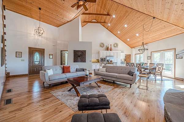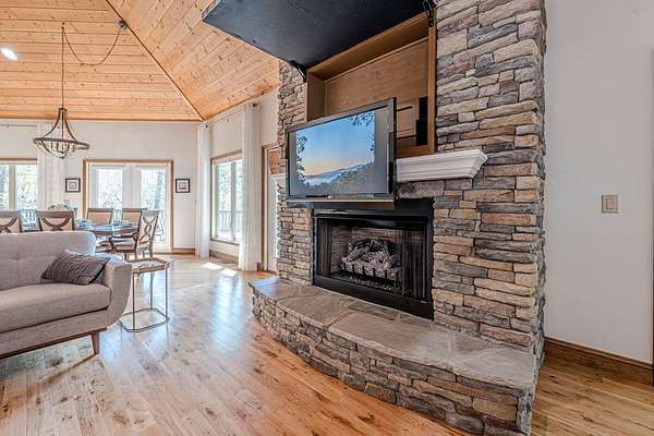 Immaculate home with year-round mountain views is ready for full-time or part-time living, or to be used as a short-term rental. Among the many updates are a newly added fourth full bathroom and two remodeled bathrooms on the main level; updated kitchen including the addition of a Jennair gas range, so there are two full ovens; tankless hot water heater; new HVAC system; new custom stone retaining wall; two washer/dryer hookups with new LG stackable units remaining in primary bathroom. The lower level has a large family room with double doors to the lower deck, a full bath, and a flex room that the owners have set up as a fourth bedroom. The septic system has been updated with a new drainfield to accommodate four bedrooms/bathrooms. The home is surrounded by nature with beautiful flowering trees and shrubs on a double lot of 1.5 acres. Enjoy the gorgeous long-range mountain views, sunrises, and hummingbirds from the expansive back deck. The private screened-in porch with its gas-log fireplace is a cozy year-round retreat. All furniture, bedding, and window treatments to remain with the home. Don't miss this one-of-a-kind home in the mountain town community of Coosawattee River Resort with three pools, five parks, tennis and pickleball courts, arcade and fitness center.