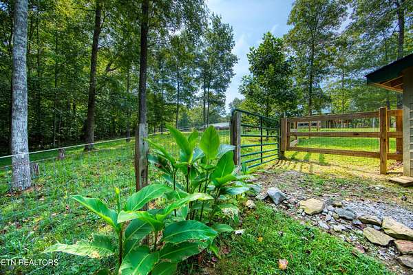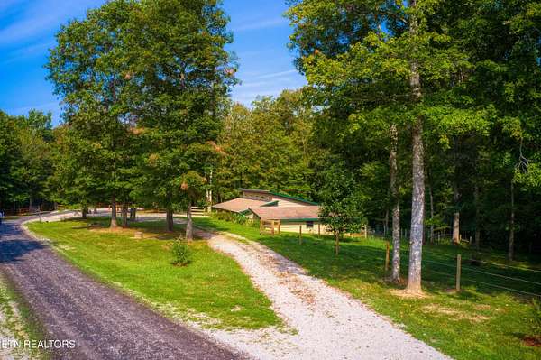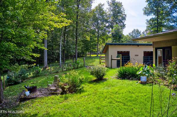 PENDING CONTINUE TO SHOW WITH A FIRST RIGHT OF REFUSAL. New HVAC & Replaced Fencing 2 yrs ago. Equestrian property in the White Oak Community with 8 to 10 miles of community trails & also a DIRECT TRAIL Access into the BIG SOUTH FORK with 250 miles of dedicated Horse Trails. This Modern Styled home features a Vaulted ceiling with custom windows at the ceiling location. Plenty of track lighting. Open living concept. 2 generous sized bedrooms. Kitchen island. Separate Laundry room. Also a 2 stall barn with a tack room. 2 small pasture areas. Located at the end of a cul-de-sac. RV Hook up site with Power, Water & Septic. Wrap around driveway. Small shed for gardening tools. Back yard is set up for Butterflies and a fire pit seating area. Slow down, relax, and enjoy the experience of a National Park being the Big South Fork, some of Tennessee's best riding experiences. EXCELLENT OPPORTUNITY FOR AN AIR B&B INCOME.