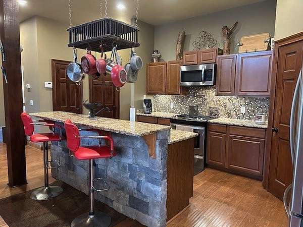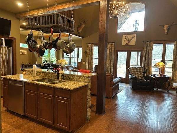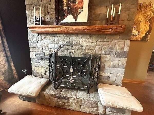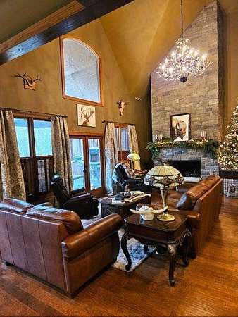Gorgeous Lodge style home on 40+ acres constructed of cypress & stone is truly a must see. Set out in the country, this property has so much to offer. Home is 3 bedroom, 3 1/2 bath with 2 bedrooms downstairs, 2 full baths and 1/2. Upstairs loft for 3rd bedroom or rec space and a full bath. Upscale kitchen with stainless appliances and granite counters, gorgeous wood floors and stained wood throughout. Open concept kitchen, living and dining room with a gorgeous wood burning fireplace, hand carved mantel and stonework. 2 private porches attached to downstairs bedrooms with fireplaces and a large back porch with fireplace and media hook up off the living room make for a great entertaining space. Great view to sit and relax and watch the wildlife. Plenty of deer and turkey for the hunters out there, would make a great hunters retreat too. Too many extras to mention! Convenient location to town. Give me a call today to set up a showing. Kim Powell 912-293-2990
