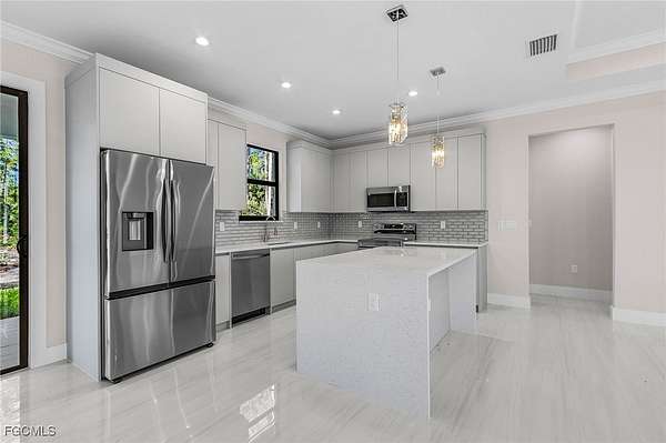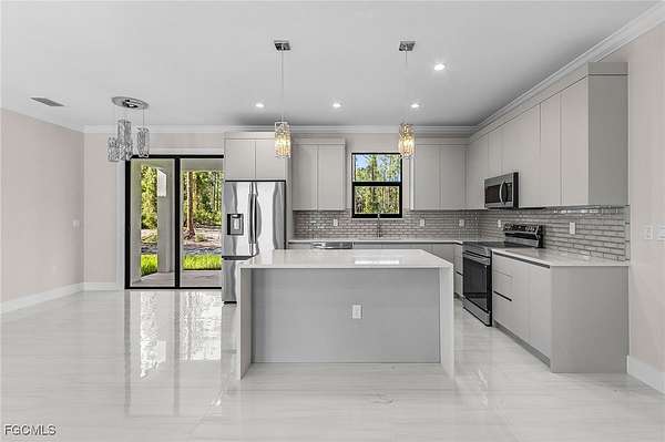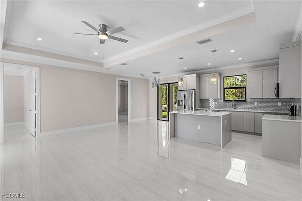 PRICED TO SELL! Move-in Ready! Gorgeous, 3 bedroom PLUS den, NEW CONSTRUCTION situated on a 2.27 acre lot. No restrictions or HOA fees. This inviting home showcases great attention to details and evident high quality built. Featuring 9'4" high ceilings with 10' tall tray ceilings; tile carried out throughout the house creating a clean, seamless, and spacious look; a fresh modern kitchen with all CUSTOM cabinets, quartz countertop, a waterfall island; crown molding on main living area and master bedroom; 6" baseboards throughout; 8-ft doors; and beautiful, modern bathrooms featuring vessel sinks and custom cabinetry. ALL IMPACT RESISTANT WINDOWS AND DOORS. Automated sprinkler system and asphalted driveway. Located in the rapidly growing Golden Gate Estates area, just a short driving distance from the brand new Publix on Oil Well Rd. and the various retails stores at the brand new Randall Curve. And to top it off, close proximity to the 150 acre Big Corkscrew Island Regional Park and great Naples public schools, making this home the perfect investment for your family! MLS pictures are a representation of house of same model, not actual property. CHECK OUT THE VIDEO TOUR OF A SIMILAR MODEL HOUSE!