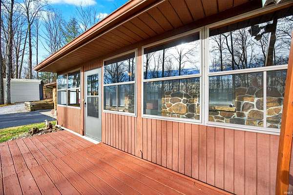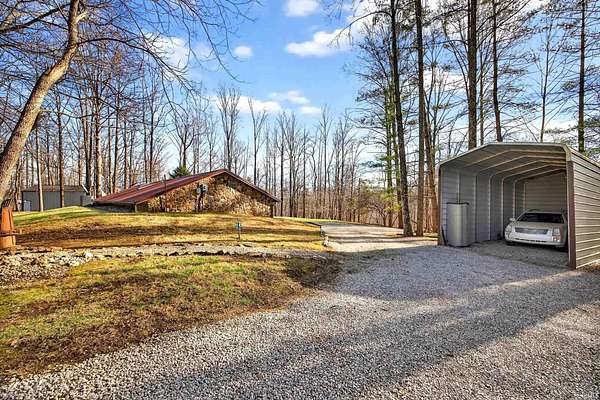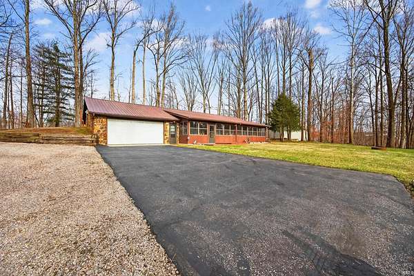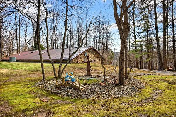 Travel down a Private gravel drive to your own personal retreat, energy-efficient berm home on 4.9 acres just minutes from Lake Monroe, designed for those who value space, privacy, and hands-on living. The land offers a rare mix of open field and wooded hills, abundant wildlife, and a peaceful setting that feels like your own personal playground. Key Highlight part of the property line abuts 133 Acres of land owned by the United States of America. Exceptional hobby and storage setup includes a heated and cooled 24x32 pole barn with loft and air compressor, attached enclosed lean-to 16 x32, and tall carport (12 x31) ideal for a boat or RV. In addition to the energy efficiency and security of a berm home, recent updates include metal roof, furnace, water heater, washer, and dryer (all within 2 years), plus generator hookup. Located adjacent to Red Oak Estates with optional participation in annual community events including a yard sale, holiday parades and Fireworks; Additionally, near Smithville Community Center, which has a community park and hosts the farmers markets and annual car show. Mattatha is an easy five-minute escape to boating on Lake Monroe. This property was built for privacy, projects, and a lifestyle that lets you truly unplug. And is a place where you can come home, shut the gate, work on what you love, and breathe.