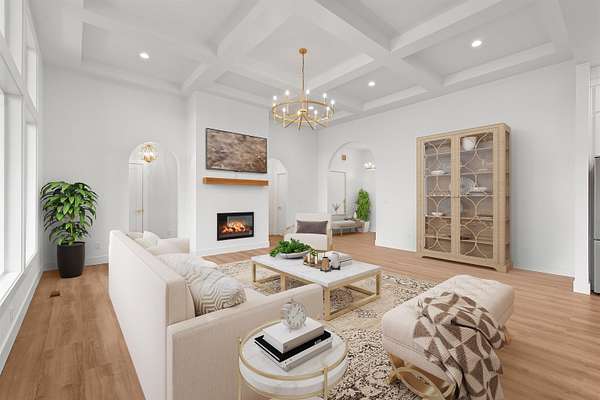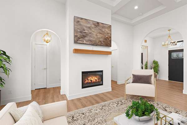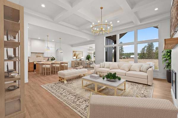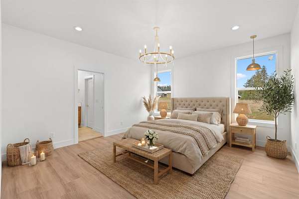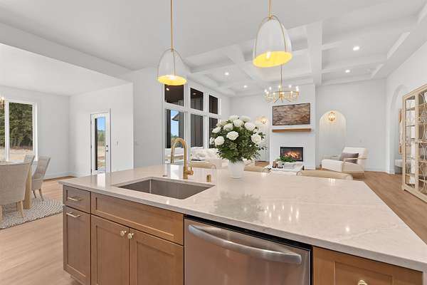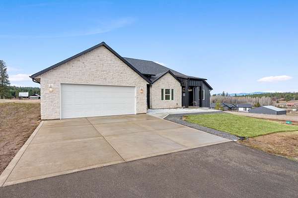 Home! This brand new home is a custom once in a life time opportunity! Modern craftsmanship with 10.5 spacious acres and panoramic Mt. Spokane views in this new build by Maximus Homes. Approach the stone-accented exterior to find a seamless zero-step entry leading into 2,374 sq/ft of convenient, single-level living. As you step inside, the stunning, design unfolds through elegant arched doorways and a great room coffered ceiling, creating an atmosphere of timeless grandeur. The two-tone kitchen with it's stunning surfaces and brushed gold fixtures, complemented by a butler's pantry with a grocery door, and spacious dining that extends to the covered back deck. The master suite is your own personal wellness center, featuring a luxury tiled bath with walk-in rain head shower, sauna and a custom California-style closet. This home also boasts it's own spacious office room and guest bedrooms, finished with an expansive laundry and wet room that adds exceptional storage. Don't miss this stunning home!