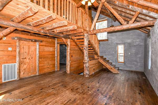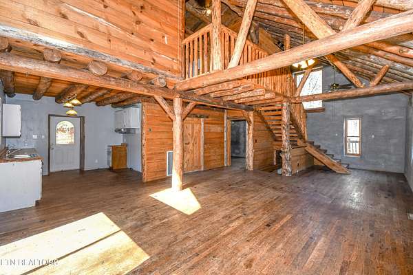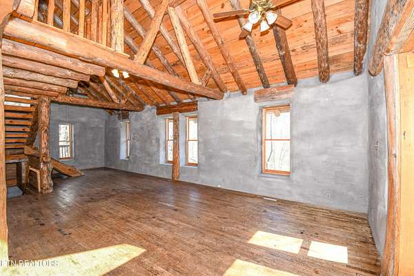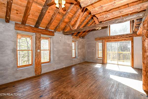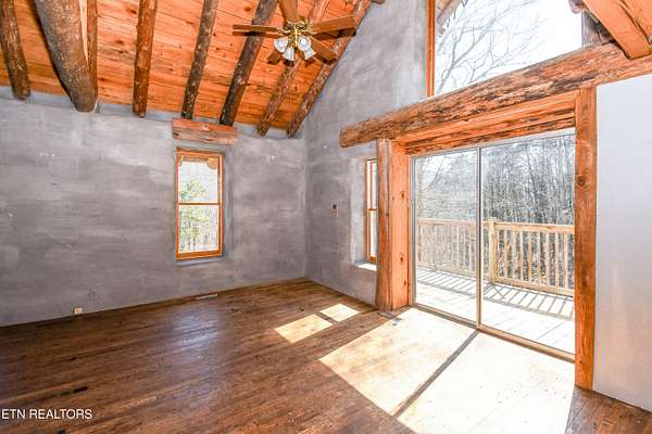 Welcome to a truly rare opportunity to own a private mountain retreat set on over 22 breathtaking acres. Offered for the first time by the original owner, this charming two-story basement cabin delivers the perfect blend of seclusion, natural beauty, and potential. As you travel along the scenic stream toward Butterfly Hollow Road, you are welcomed by peaceful mountain views that set the tone for this incredible property. Built in 2001, this mountain chalet features over 1,700 square feet of finished living space with approximately 1,150 additional unfinished square feet in the basement, offering the potential to expand to nearly 3,000 total square feet. Inside, you'll find warm hardwood floors, beautiful exposed wood beams, and an open-concept layout designed for both entertaining and everyday living. The spacious kitchen flows seamlessly into the main living area, allowing you to take in the surrounding views while hosting family and friends. The home offers four bedrooms and two full bathrooms, with a third bathroom already plumbed in the basement. The lower level features an additional open living space that could easily be finished to create separate living quarters, a guest suite, or the ultimate recreational area. Surrounded by mature trees, the property feels like your own private park, offering unmatched tranquility and endless possibilities. With no HOA and minimal deed restrictions (no mobile homes), this unrestricted acreage opens the door for a variety of uses--whether you envision a personal mountain getaway, investment opportunity, or future expansion. Conveniently located just minutes from the Smoky Mountains and close to Highway 321, this property provides easy access to schools, shopping, and dining while still offering complete privacy. Opportunities like this--with acreage, views, and flexibility--are incredibly rare.
