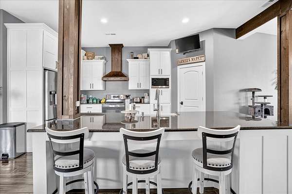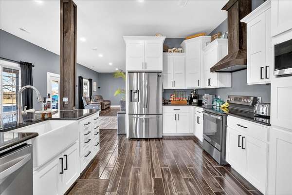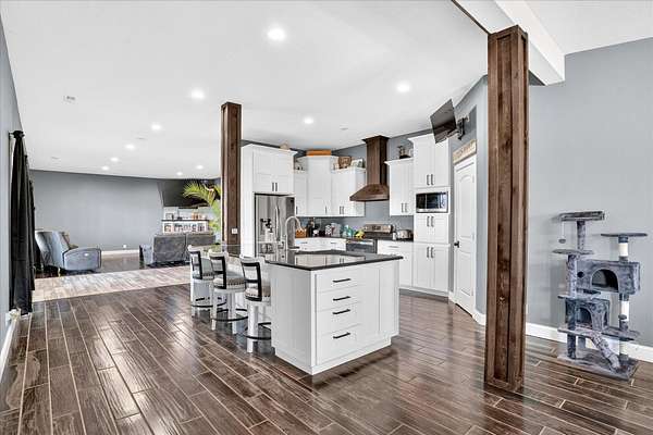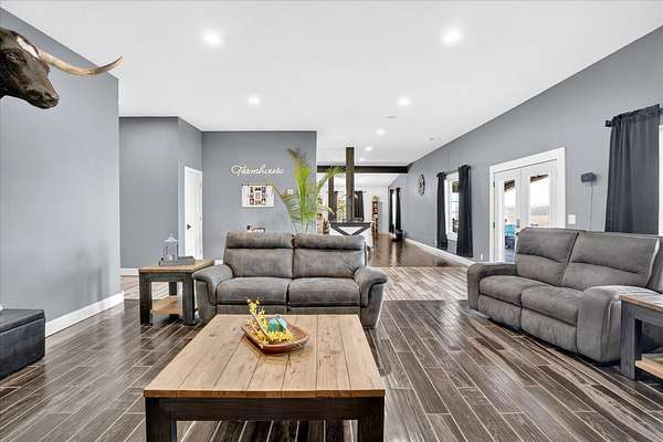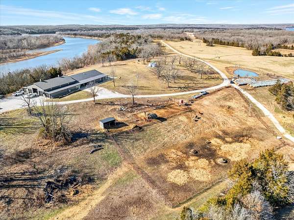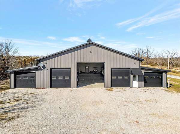 Located just north of Bolivar, Missouri near Pomme de Terre Lake, this rare 100 acre property offers large acreage, lake proximity, and substantial improvements in one of southwest Missouri's most desirable recreational areas. Properties offering this combination of usable land and close access to Pomme de Terre Lake are increasingly difficult to find in the Bolivar and Polk County region. The property features nearly one mile of lake frontage along Pomme de Terre Lake, providing exceptional access to the shoreline and the rare ability to launch your own boat directly from the property.The property sits less than two minutes from the water's edge of Pomme de Terre Lake, providing quick access to boating, fishing, and year round recreation while maintaining the privacy and space that only large acreage can provide. Approximately 100 acres of gently rolling, grazeable pasture create a versatile property suitable for livestock, recreation, trail riding, hunting, or simply enjoying the natural setting that defines this part of southwest Missouri.The residence includes approximately 5,700 square feet of living space with five bedrooms and three and a half bathrooms, offering ample room for family, guests, or entertaining. Designed to capture the surrounding landscape, the home provides comfortable living space for a full time residence, private lake retreat, or multi generational property.In addition to the residence, the property features an impressive 6,900 square foot shop area complete with five bays, office space, paint booth, and bathroom facilities. This space is well suited for storing boats and recreational equipment, operating a business, maintaining vehicles, or creating a large workshop environment for serious hobbies or equipment storage.Large acreage properties with extensive frontage on Pomme de Terre Lake, modern living space, and substantial shop improvements rarely become available in the Bolivar and southwest Missouri market.