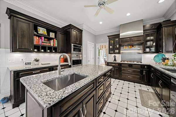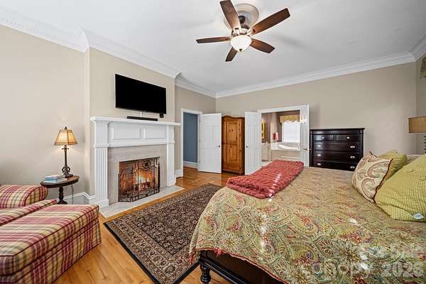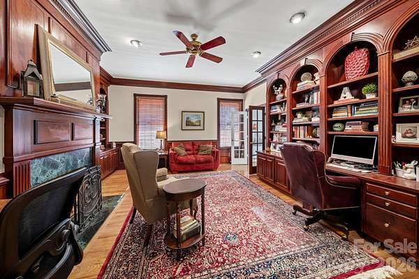 Elegant country estate offering 4 bedrooms, 3.5 baths on 1.65 acres, surrounded by a larger parcel with up to 11 additional acres available for purchase from the adjoining property owner-an exceptional opportunity for privacy and expansion. The spacious main-level primary suite features a private fireplace, oversized bath, and expansive walk-in closet. Rich architectural details continue with a custom library with built-in cabinetry and fireplace, and a formal dining room with fireplace, creating refined yet inviting living spaces. The kitchen is well appointed with a gas cooktop, wall oven, microwave, breakfast area, walk-in pantry, additional prep sink, and ample storage, opening to a dramatic two-story living room with fireplace and wet bar. Upstairs offers three additional bedrooms, including one with a private en-suite bath, plus a large bonus room with bar area, ideal for entertaining or recreation. The home provides abundant storage throughout. Outdoor amenities include a fire pit, pool house, and a former pool area that has been filled in, along with a detached two-car garage and detached carport. A new roof installed in 2021 adds peace of mind. A rare blend of timeless elegance, generous living space, and acreage potential in a private country setting.