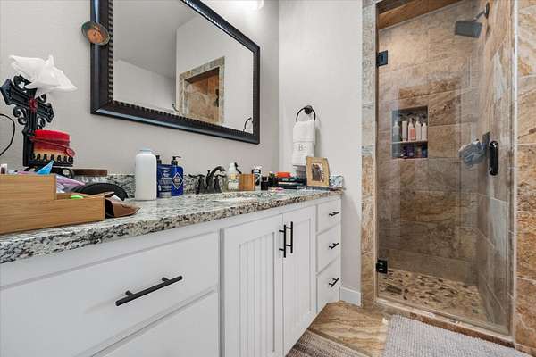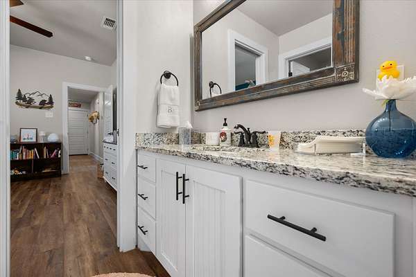 - Breakfast Bar, Ceiling Fan(s), Chandelier, Granite Counters, Kitchen Island, Open Floorplan, Walk-In Closet(s)