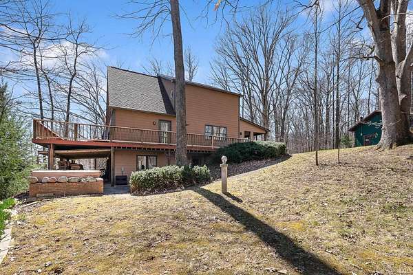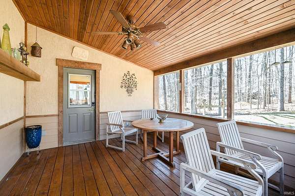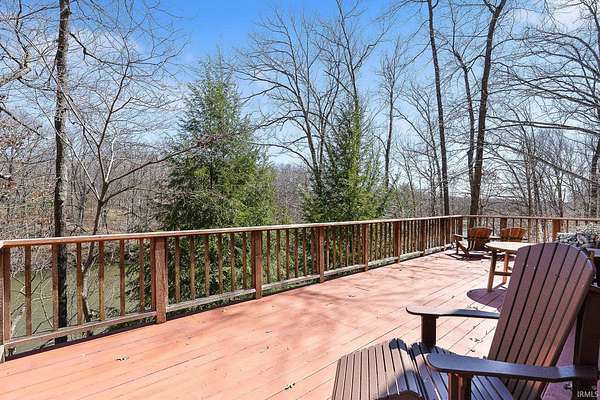 Welcome home to your private lake house oasis! 3265 N Lahr Drive is a hidden gem offering endless opportunities while having the best of both worlds, all the privacy and seclusion you could want and a location that is convenient to everything. Just minutes from Martinsville, 12 minutes to I-69, 30 minutes to Bloomington, and 30 minutes to Indianapolis International airport! Property is situated on 5.5 acres at the end of a dead end private road of all mature woods overlooking Lahr Lake, a private 14 acre lake providing all the peace, quiet, and nature you are looking for. From the relaxing outdoor entertaining areas, to the custom built maple cabinets, solid poplar trim throughout, and solid lake loop geothermal system, no details were left out when this property was designed and built. Walking into the main level you will find a large mud room leading into an open concept kitchen with breakfast bar, living room, formal dining room, and half bath. Upstairs you will find a large owners suite with a walk-through closet, full en-suite bath, and laundry area. Downstairs in the large finished walk-out basement you will find two additional bedrooms, one with a full en-suite bath, and a large family room. An unfinished utility room also offers a secondary W/D hookup giving the lower level great potential for an in-law/private suite. Lots of outdoor entertaining space with large decks overlooking the lake on both the main and lower levels wrapped in cedar railings as well as a front entry covered porch. The oversized 24' x 36' detached 3 car garage has automatic garage door openers as well as its own 100 amp electrical panel and offers plenty of work space. Total acreage is divided up between 5 individual lots with lots 5, 6, and 7 together being buildable! Lot 6 comes equipped with a 165' water well already in place. Don't miss your opportunity on this one of a kind private lake retreat in Morgan County, an offer rarely found on the market. Schedule your showing today!