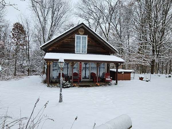 A rare opportunity to own a proven income-producing retreat with an established and highly successful Airbnb. This charming 1-bedroom, 1-bath cabin, built in 1986, is fully furnished and features the convenience of main-floor laundry. With over 300 five-star reviews, the property is set in a truly private, storybook setting tucked deep within the woods on nearly 15 acres. Guests are drawn to the peaceful surroundings, cozy cabin character, and magical outdoor spaces that create a memorable getaway experience year-round. The expansive acreage offers endless possibilities for future expansion, additional rental units, or personal enjoyment. Whether you're looking to continue a turnkey short-term rental operation or secure a secluded escape with strong income potential, this property delivers privacy, performance, and charm in one exceptional package. Out of respect for current guests, please do not drive down the private lane unless you have a scheduled showing.