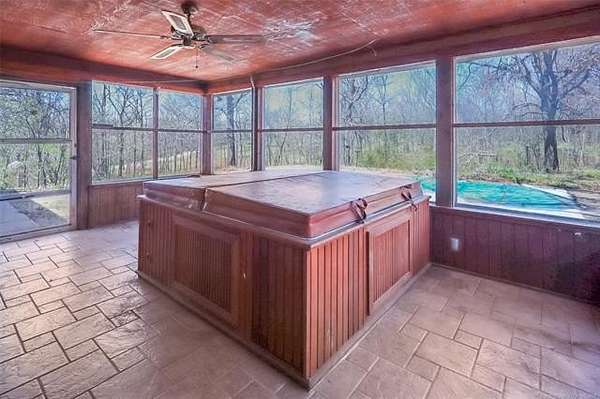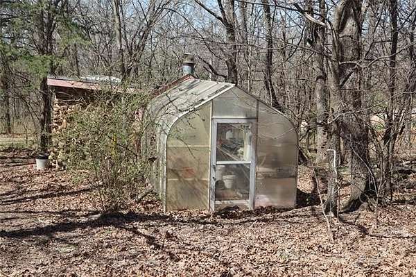 Property includes a ranch-style house, an inground pool, a glass-enclosed patio with a 6-person Cal Spa jacuzzi hot tub, Greenhouse with Potting Shed and wood stove, 14.5 x 14.5 shed, 12 x20 shed, 15 x 38 shed, 40 x 60 barn with storage & divided down the middle, Fenced and cross fenced, asphalted driveway, roof replaced in 2021, New heat exchange pump/central air 2009, ceramic tile floors throughout the house in 2000, chimney repairs and fireplace insert in 2010, septic pumped in 2025, Electrical circuits upgraded in 2000, deadbolts on all exterior doors, Pass-through cabinet for logs in living room, electric garage door openers, beautiful wooded land, easy access to Route 66 (2 miles) south 69 5miles, Big Cabin entrance/exit 283 to Interstate I-44.