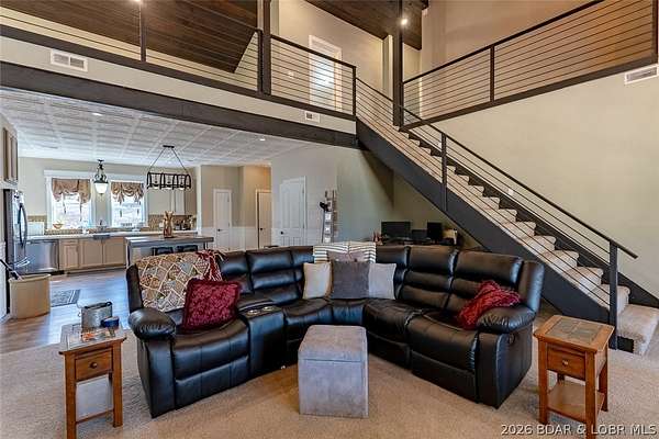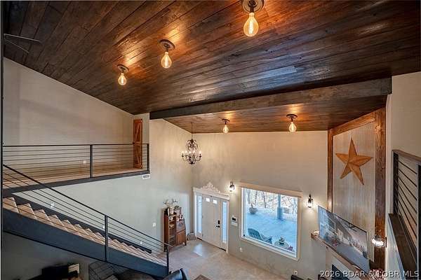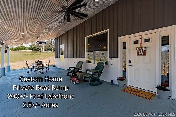 Bring your plans--here's the opportunity! With plenty of room to live, play & invest, this exceptional lakefront property offers quality construction, custom craftsmanship & future potential. Situated on 2+ acres with 200' of shoreline in a quiet cove, this newer home is designed for both enjoyment & entertaining. Open living, kitchen & dining area with vaulted ceilings, loft & stunning floor-to-ceiling pellet stove feature. Custom kitchen has a great pantry closet & coffee bar combo. Classic touches throughout the home. Main level primary suite has walk-in closet, laundry, bath & patio. Custom open stairway leads to family room, 2 bedrooms, full bath & bonus room ideal for office or 4th BR. Attached 800 sf shop/garage adds valuable storage & workspace. Private boat ramp, dock with lift & more dock permit possibilities. The acreage & lakefront layout offer outstanding development potential with room for possibly three additional lake homes, including space for another large waterfront home. A rare chance to own a well-built lakefront property with fantastic expansion potential. Live in one & develop a set of vrbo homes. Seller's have recently cleared some trees for larger view.