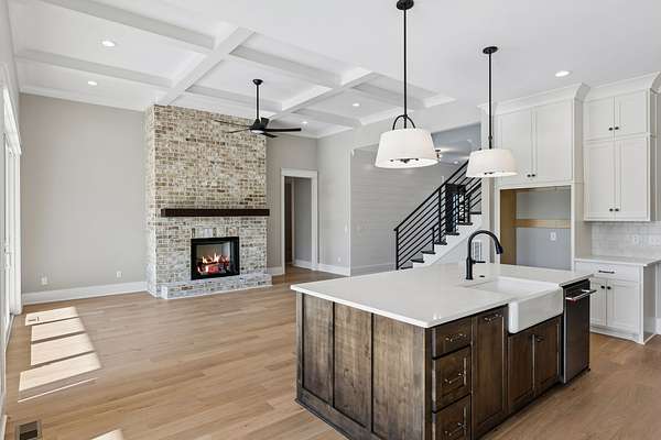 Step inside and you’ll notice the little touches that make this home extra special—like soaring 10-foot ceilings and 8-foot doors on the main level, a hidden Murphy door tucked into a custom bookcase in the office, and an all-brick indoor gas fireplace perfect for cozy nights in. The kitchen is a dream with a huge walk-in pantry and a coffee bar ready for your morning brew.