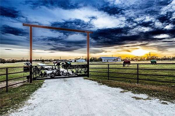 Stunning modern rustic barndominium built in 2023, situated on 11.60 acres in North Zulch, Tx. The home offers an attached Carport to shelter vehicles and easy access to the home. A Private Driveway with a Custom Automatic gate which enhances privacy and welcomes you home.