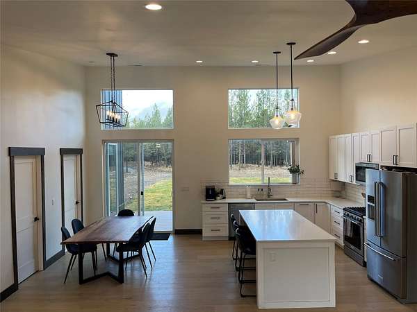 Welcome to this newly built custom home on over 10 acres in beautiful Marion, Montana. Experience pristine luxury living in this 3 bed, 2.5 bath modern single level home close to Bitterroot Lake, w/easy access off county maintained roads. Step inside to see the modern custom finishes such as quartz countertops, engineered hardwood floors, custom wood trim, vaulted ceilings & oversized windows throughout the home to maximize the natural light. The master suite boasts: large walkin shower w/double shower heads, dual vanities & a large walk in closet. There are 2 additional bedrooms & a guest bath. This home also includes a large laundry room, powder bath, mudroom and walk in pantry to maximize storage space. Located only 30 minutes from Kalispell, this home is truly a retreat with all the essentials, nestled in the quiet and privacy of the forest. Recent appraisal ready for approved buyer to see.
