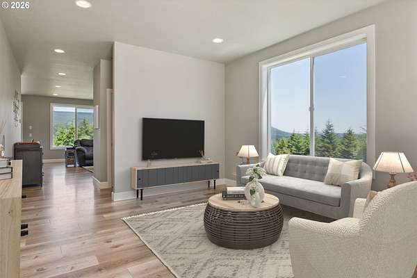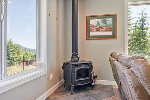 Modern Living meets natural beauty nestled on 13+ forested acres, offering privacy, space and style. Soaring windows flood the space with natural light and frame sweeping views. The grand kitchen has both beauty and function, featuring quartz countertops, stainless steel appliances, abundant storage and counter space. It flows into the dining area and family room, where a wood stove adds warmth and charm. The primary suite is a true retreat with a large walk-in closet and a spa-like bathroom. Two additional bedrooms and a full bath along with a half bath to round out the thoughtfully designed floorplan. RV parking, space for a shop and a small pasture ready for your hobby farm dreams. Potential to subdivide (buyer to verify). This is Northwest living at its best!