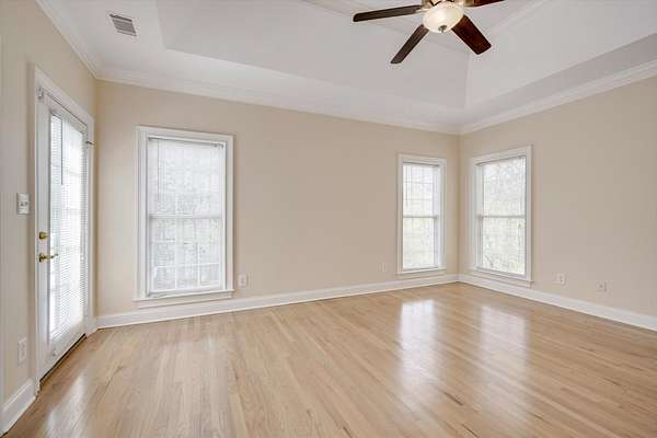 Welcome to 327 Peter Carnes Drive, where everyday living feels a little more relaxed, a little more private, and a lot more connected to the beauty of your surroundings! Tucked at the end of a quiet cul-de-sac in picturesque Mount Vintage golf course community, this 4-bedroom, 3-bath home sits on 2.9 wooded and landscaped acres, offering a peaceful backdrop for both quiet mornings and memorable gatherings. Recent updates bring added confidence and ease, including newly refinished hardwood floors (March 2026), both furnaces replaced and upgraded, and two brand-new 3-ton ac- condensing units installed, including an additional return added (February 2026). Heating and cooling units offer a 10-year warranty for additional peace of mind. Interior professionally painted throughout. Exterior improvements include a new roof, gutters, and downspouts installed in October 2023, as well as partial crawlspace encapsulation completed in April 2024. Step inside this lovely custom home and you're immediately greeted by sun-drenched spaces, soaring ceilings, and beautiful hardwood floors that carry throughout the main living areas. Just off the foyer, a formal dining room and dedicated office provide flexible spaces for hosting, working, or simply enjoying time at home. The great room invites you to unwind, anchored by a gas fireplace and flowing seamlessly out to the expansive composite deck. An ideal space for spending time with friends and family, weekend cookouts, or taking in the calm of the surrounding landscape. At the center of it all, the kitchen is designed for connection! With a central island, generous counter space, stainless steel appliances, a 5-burner gas range, and Corian countertops, it's a space that easily transitions from casual weeknight dinners to hosting with ease. The adjoining sunroom offers a wall of windows framing a panoramic view of your private backyard. Perfect for relaxing year-round! Just beyond, the screened porch becomes a favorite spot to start your day with coffee, enjoying the exquisite fragrance of gardenias when in bloom. The split-bedroom layout offers a sense of retreat and provides maximum privacy, with the primary suite tucked away on the main level. This inviting space features hardwood floors, a tray ceiling, dual oversized closets, and an ensuite bath with a soaking tub, separate shower, and double vanity. Two additional bedrooms and a full bath are located on the opposite side of the home, providing comfort and privacy. Upstairs, a spacious fourth bedroom with its own ensuite bath offers flexibility for teens, guests, or extended stays. The home is designed with storage in mind throughout, complemented by a functional laundry room featuring built-in cabinetry and a utility sink. A 3-car side-entry garage provides additional space for parking, storage, and room for your golf cart! Centered around an award-winning 27-hole golf course, the community also offers a fitness center, Junior Olympic-sized pool, Har-Tru clay tennis courts, a community garden, and a lending library. Come experience the space, the setting, and the lifestyle. Schedule your private showing today!