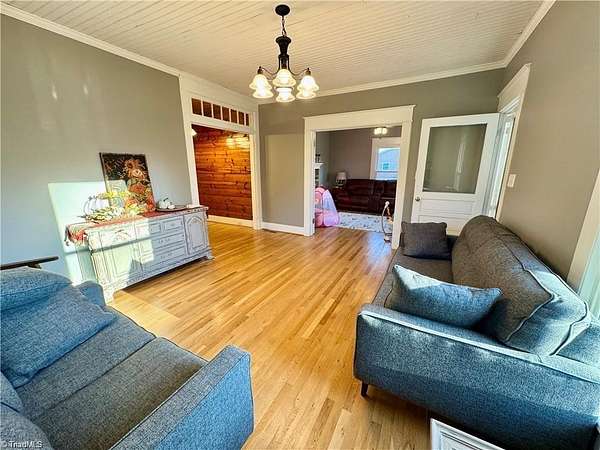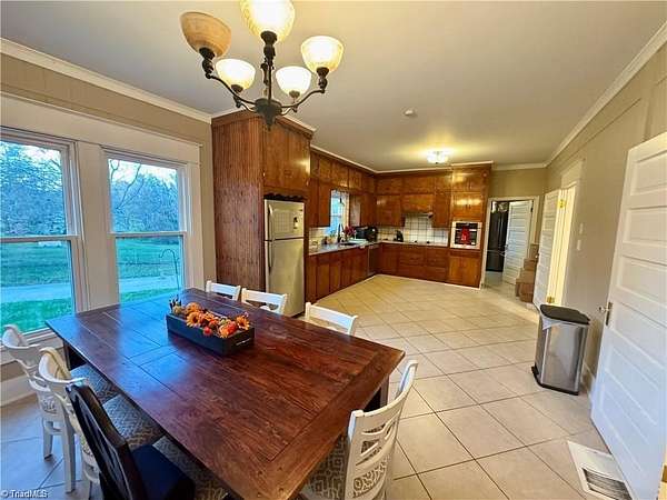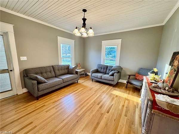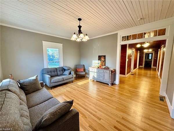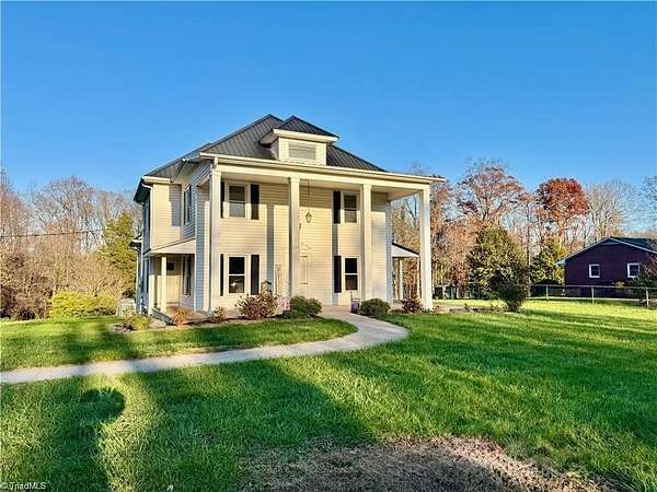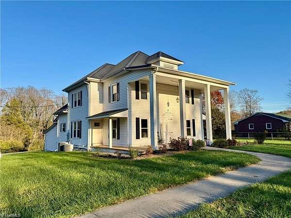 HUGE PRICE IMPROVEMENT. This beautifully remodeled home offers a perfect blend of modern amenities and classic charm.With 6 BEDROOMS, 1.5 ACRES +/-, featuring large rooms and tall ceilings, the property boasts original bead board accents that enhance its character.The main level bedroom includes a cozy fireplace w/gas logs, adding a touch of warmth.The open-concept kitchen is a highlight,equipped with granite countertops, tile flooring, real wood cabinets,and updated appliances,making it ideal for both cooking and entertaining.A large back sunroom leads to a covered porch, perfect for enjoying outside.The 2020 metal roof, along with recent screw replacements, ensures durability, while the two heat pumps and fresh paint make the home move-in ready.Located near hiking trails,vineyards & wineries, this property is not only a beautiful residence but also a gateway to the vibrant lifestyle of the Yadkin Valley. Possible widening of road, buyer to verify. VA Assumable Rate for Veteran.