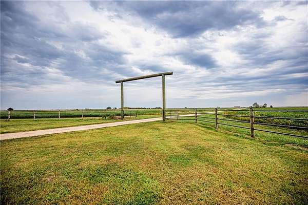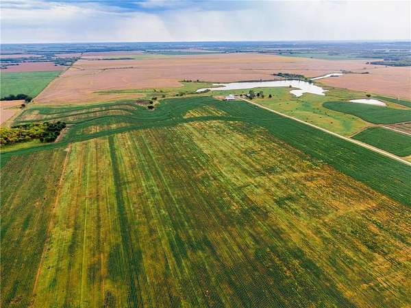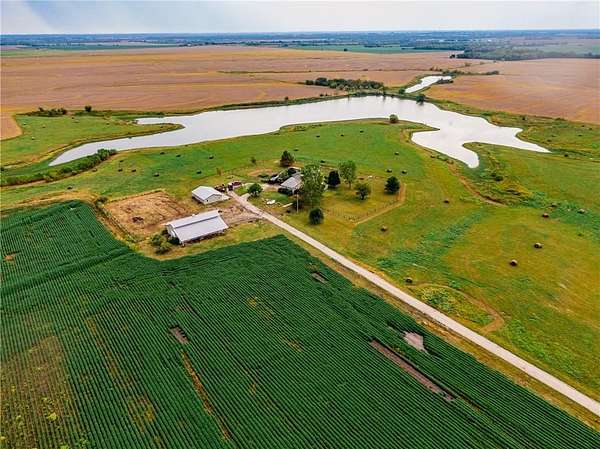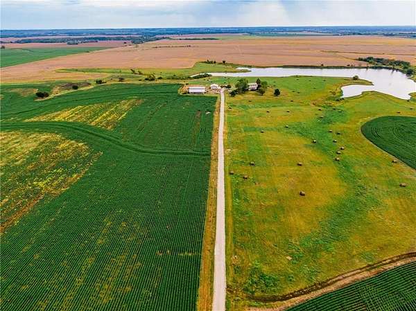 Very nice, clean 100 acres more or less, 80 acres of which are tillable in Anderson County, KS. The tillable land is made up of very good, Type II Woodson soils. The balance of the land is nice hay meadows and a nice patch of timber. The property also boasts a very unique, 2985 square foot, 3 bedroom, 2 bath, 1 1/2 story home. It sits at the end of a driveway that is almost one-half mile long! You'll find an open floor plan which includes a huge master suite wing that is connected to the main body of the home by way of a large office which could be used a library, home school room or family room. Off that suite is your own private sunroom in which you will enjoy picturesque views of the countryside and neighboring lake. The main body of the home is wide open with the kitchen, dining and family rooms designed for easy communication and entertaining! The upstairs includes two large bedrooms with a large bathroom. You'll love the hard wood floors throughout and everywhere you look there are windows, lots of windows. Natural light flows in abundance. The home sits on a full, unfinished basement ready for your finishing touches or storage. There is also a nice 60 x 60 metal horse barn and a nice 30 x 40 metal detached garage/shop! The map is for general reference only and may not reflect exact locations or dimensions.