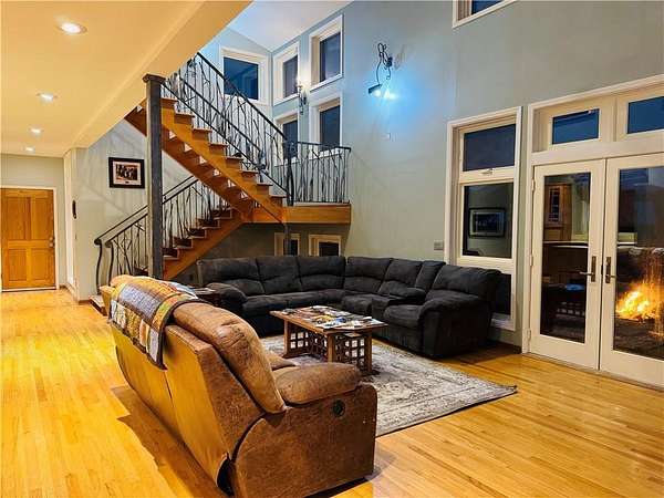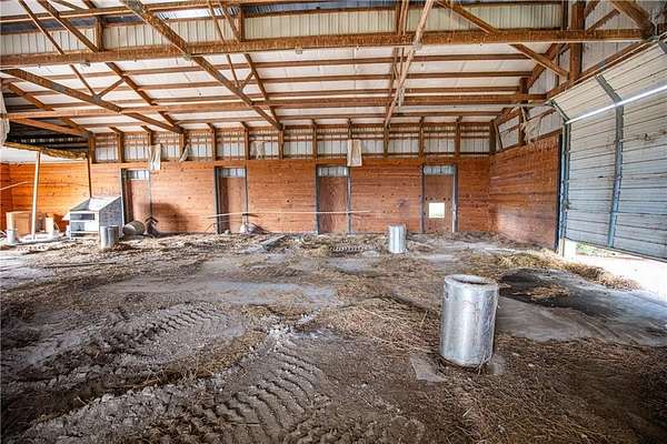 Sitting at the end of a nearly half mile driveway is this unique, 2985 square foot, 3 bedroom, 2 bath, 1 1/2 story home on 100 acres, more or less, in Anderson County, KS. You'll find an open floor plan which includes a huge master suite wing that is connected to the main body of the home by way of a large office which could be used a library, home school room or family room. Off that suite is your own private sunroom in which you will enjoy picturesque views of the countryside and neighboring lake. The main body of the home is wide open with the kitchen, dining and family rooms designed for easy communication and entertaining! The upstairs includes two large bedrooms with a large bathroom. You'll love the hard wood floors throughout and everywhere you look there are windows, lots of windows. Natural light flows in abundance. The home sits on a full unfinished basement ready for your finishing touches or storage. Outside, you'll find that 80 acres of the full 100 is good, productive tillable land with income potential. The balance of the land is hay meadows. There is a nice 60 x 60 metal horse barn and a nice 30 x