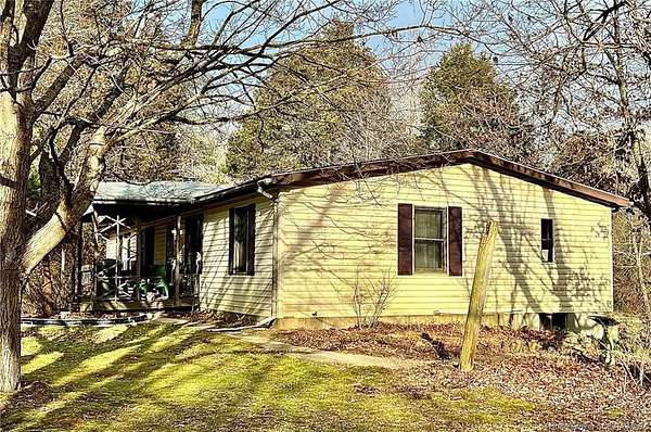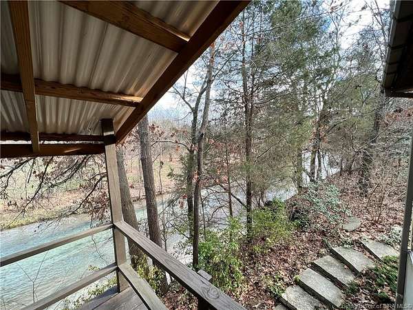 TWO PROPERTIES, LISTINGS 202206748 AND 202206602, TO BE SOLD TOGETHER AS ONE UNIT AND WILL NOT BE SPLIT. OWNERS TO DECIDE HOW PROCEEDS WILL BE SPLIT. THIS LISTING 202206602 is a 1296 s.f. Manufactured Double Wide 3 bedroom, 2 bath home with walkout basement features front porch, back deck and 20 x 20 patio overlooking Little Indian Creek. All rooms are spacious. Large master bath, split bedrooms, formal dining area. Roof 2007. Furnace 1985. 24 x 56 pole barn and 5 x 8 shed have concrete floors. 2 lean-to's need repair. Situated on 9.32 Acres accessed by a 20 ft. Right-of-Way road off Edwardsville-Galena Rd. Privacy and scenic country views. SEE LISTING 202206748 for the mobile home which must be sold with this property. Property is in a flood plain. Little Indian Creek overflows occasionally, but water has never gotten in the house. In the 1997 flood, water did not get in house or over the access road. Water was over Edwardsville-Galena Road for about 24 hours. Located in New Albany-Floyd County School District near Floyd Central Schools. Sellers welcome all inspections but are selling the property "AS IS". CALL TODAY FOR YOUR PRIVATE SHOWING!!!