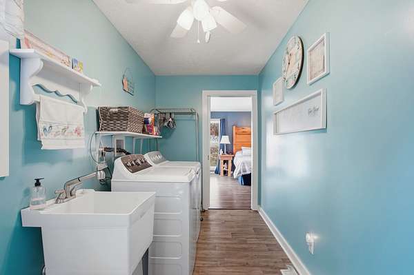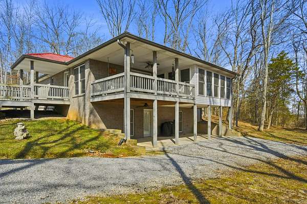 Enjoy outdoor living at its finest with a covered back porch overlooking the water, a charming front porch perfect for rocking chairs and sweet tea, and a ground-level basement patio for additional entertaining space. The spacious deck features an 18-foot above-ground pool, creating the perfect spot for summer relaxation.