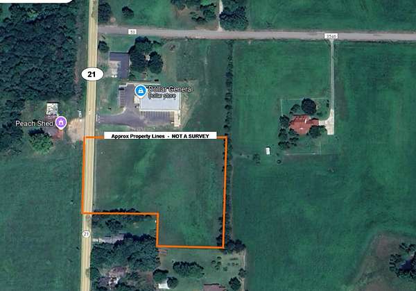 Est $875/mo4 Acres, M/L bordering Hwy 21 on the east side. Exact amount of acres to be determined by a new survey. Approx 5 miles north of Clarksville in the Ludwig community about 1 mile south of Lake Ludwig and recreation area. Open, level land has been used as a hay meadow. A new Dollar type store being built next door. Single family homes border the south side. Hwy 21 frontage on the west side. No zoning. Some Dollar Store competitive business type restrictions apply.