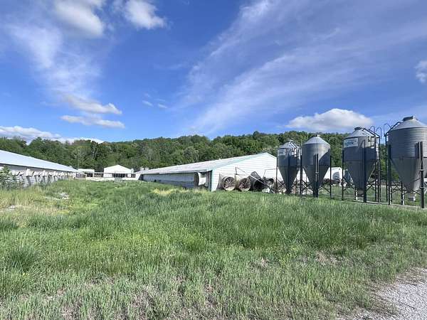 50.2 +/- acres of farmland available in Butler County, Kentucky, located on a quiet dead-end road. Previously a commercial swine farm, this property is now open for your desired use. It features 10 farrowing houses with concrete floors, most of which are still equipped with farrowing crates, a main office with three-phase electricity, shower and restroom facilities, a spring-fed pond, a lagoon, a two-bay metal pole shed, a storage shed (approximately 10x12), a 500-gallon diesel tank, an incinerator, a small maintenance building, a backup water house, a main generator, and 36 galvanized feed bins. Although this farm is no longer operational, it offers a fantastic opportunity to revitalize the land and explore new agricultural ventures. The farrowing houses are in good condition, with only a few requiring minor repairs and cleanup. These structures can be repurposed for various agricultural activities, such as aquaculture, mushroom farming, greenhouses, or livestock conversion. Discover the potential for advanced homesteading. This expansive property, combining pastureland and woodlands, presents numerous opportunities for growth and development. Agent has an interest.