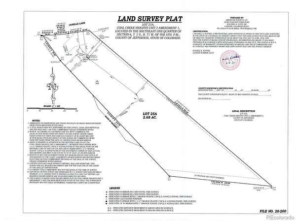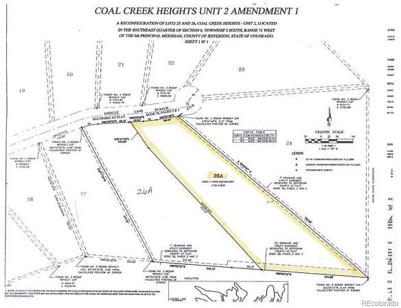SECTION 06 TOWNSHIP 02 RANGE 71 QTR SE SUBDIVISIONCD 142610 SUBDIVISIONNAME COAL CREEK HEIGHTS UNIT 2 AMENDMENT 1 BLOCK LOT 25A SIZE: 118928 TRACT VALUE: 2.730