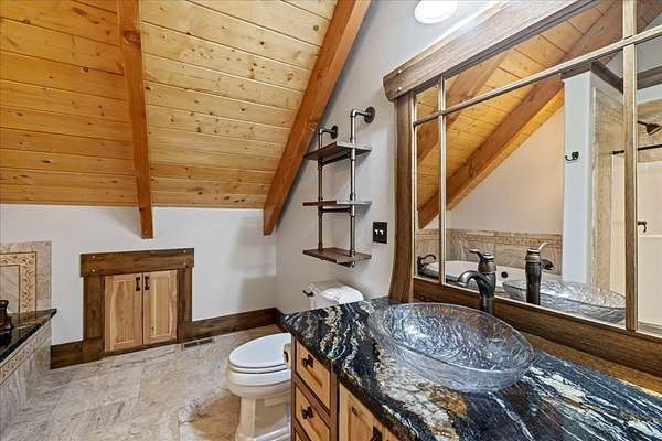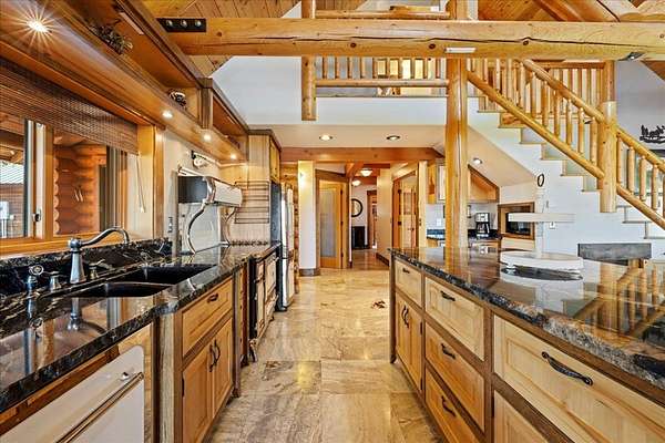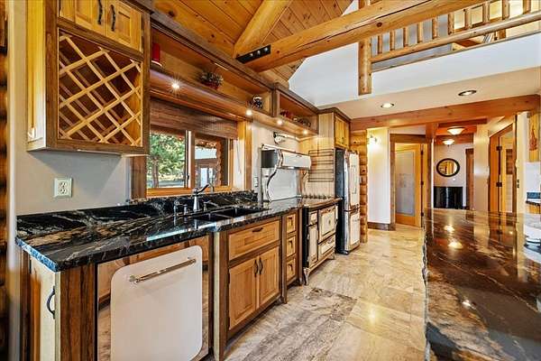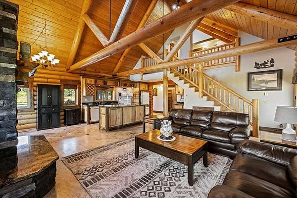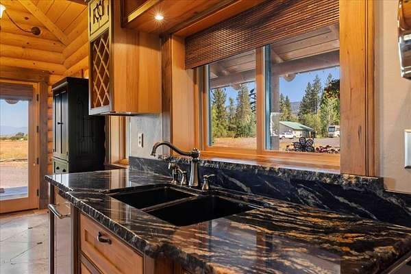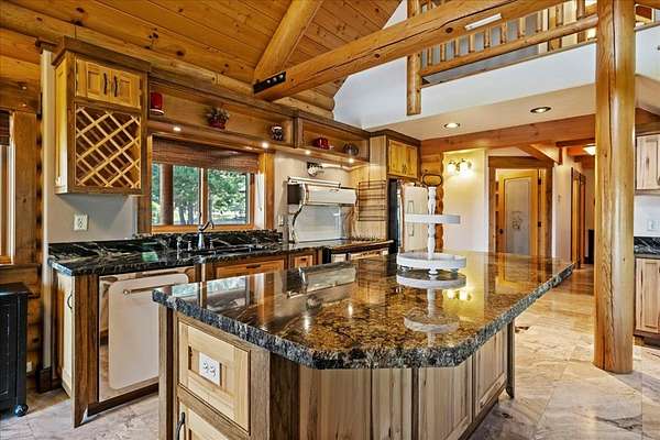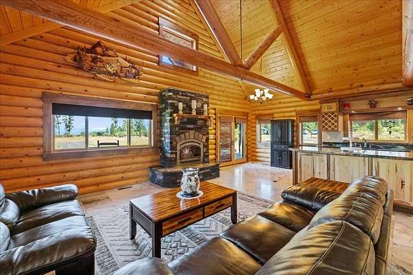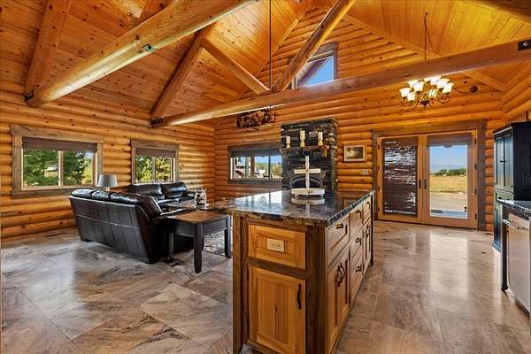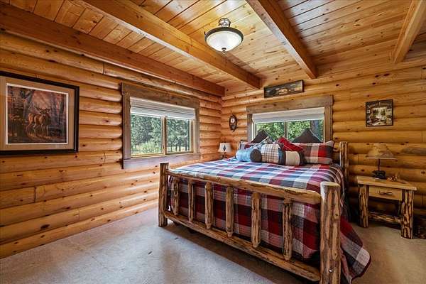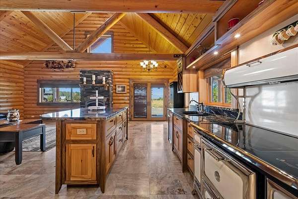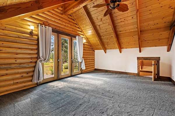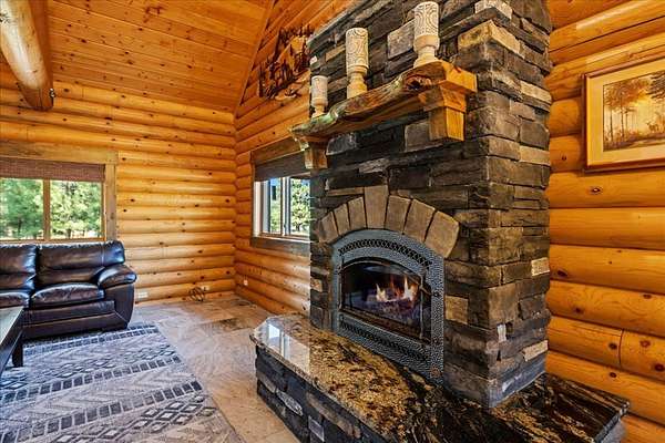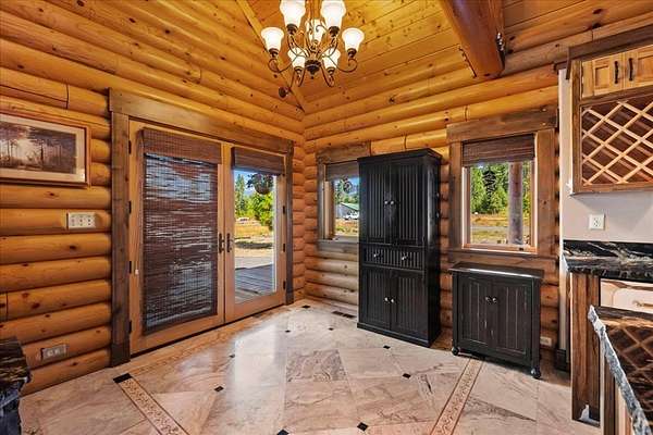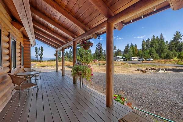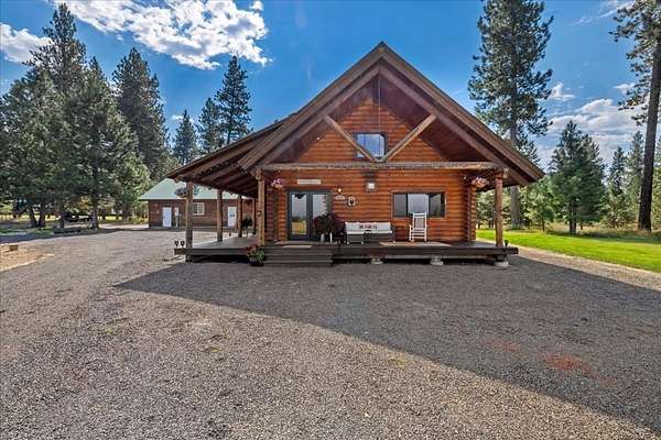 INCREDIBLY SPECIAL 5-acre property that was lovingly built as the owner's dream home featuring spectacular timber beam work, hickory stairs, Peachtree windows and doors, knotty alder, fir and pine trim, cabinets with natural birch, hickory and exotic African walnut bubinga trim. The open plan highlights the kitchen rough edge slab granite island and upgraded Heartland appliances, 20' vault with a stone lodge style propane fireplace and electric radiant heated floors of beautiful tile with inlay accents. Enjoy gorgeous sunsets on the covered decks or stroll down the river rock pathway to the yoga labyrinth or soothing sound of Goose Creek bordering the back of the property. The detached garage has a heating system and adjacent guest quarters with bathroom and shower. Recreational toys can be housed in the 14x25' vinyl shelter. This SUPREME TREASURE is east of New Meadows and only 15-20 min from McCall, 10 min from Brundage turnout. 6/30/25 Appraisal $1,004,000. Refer to FEATURE SHEET under docs/D Tab