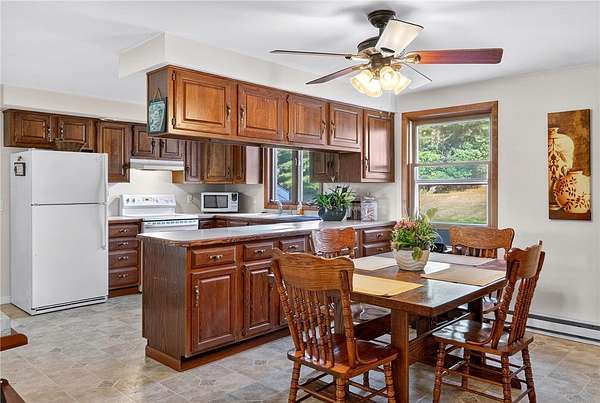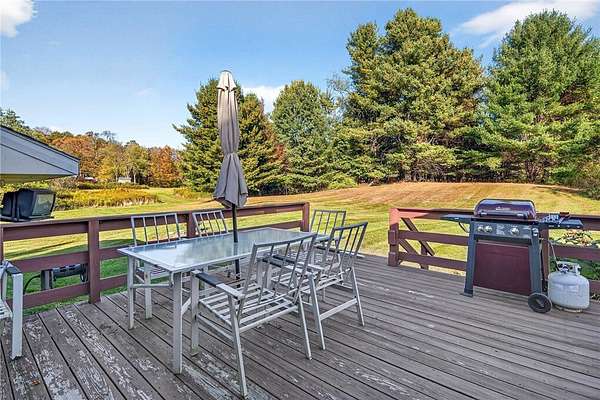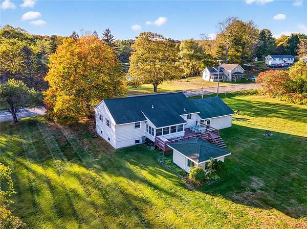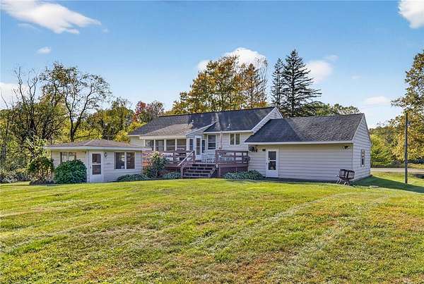 This 3 bedroom, 2 bath ranch offers the perfect blend of comfort, functionality and scenic beauty. The large kitchen features solid oak cabinetry and opens to a bright three-season Florida room and a back deck overlooking an expansive, private yard. A full, partially finished basement extends your living space with a second kitchen, recreation room, den with wet bar totalling over an additional 900 sq ft, along with a workshop and ample room for storage. A detached unfinished structure on the property offers endless possibilities. Includes an attached 2 car garage as well as a shed for storage. Nestled within the serene Lime Hollow Nature Center area, this home offers access to nearly 600 acres of forests, fields, streams, and ponds, with three trailheads just moments away on Gracie Road. Located in South Cortlandville and within the Dryden School District, this property combines natural beauty, privacy, and practicality in a remarkable setting.