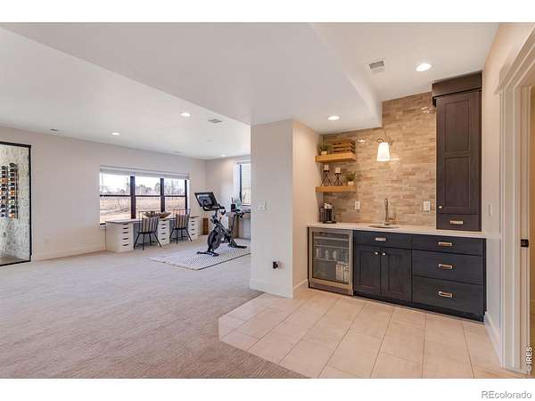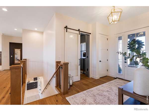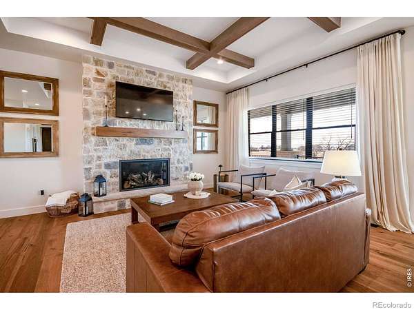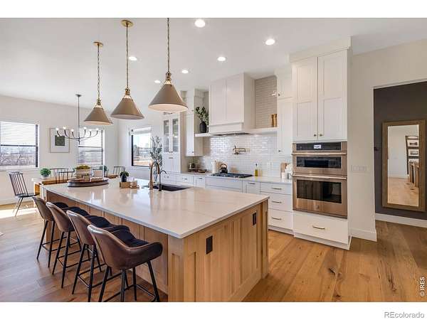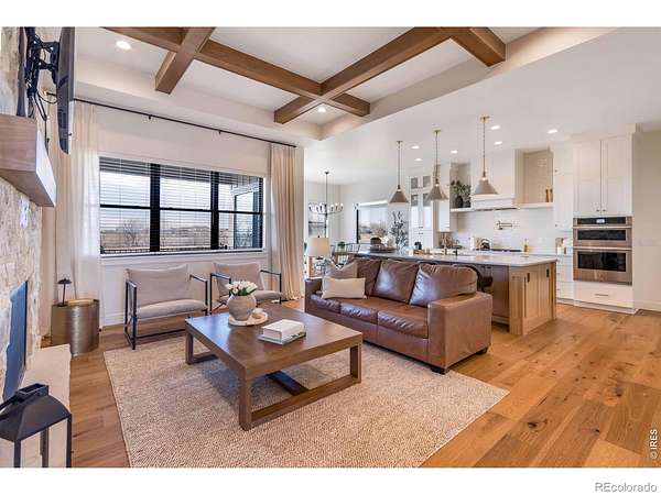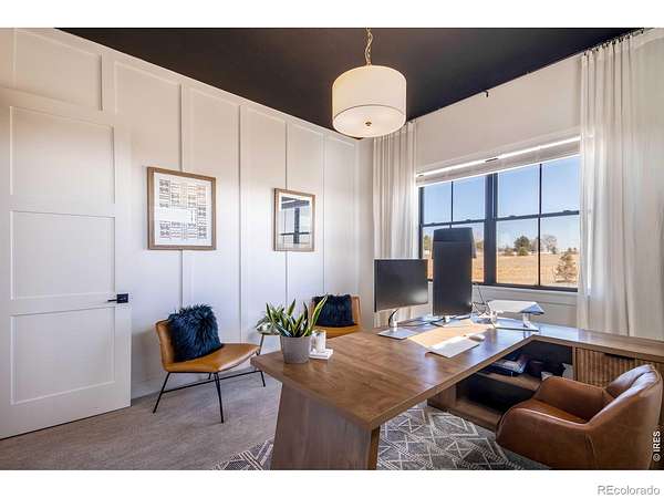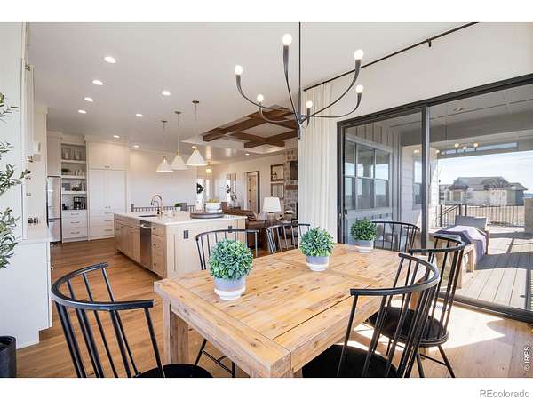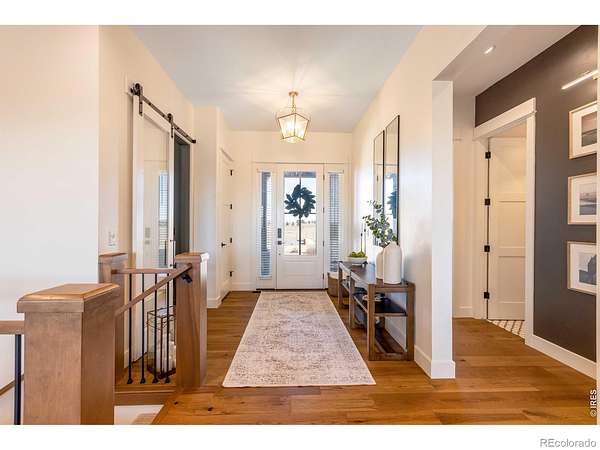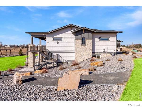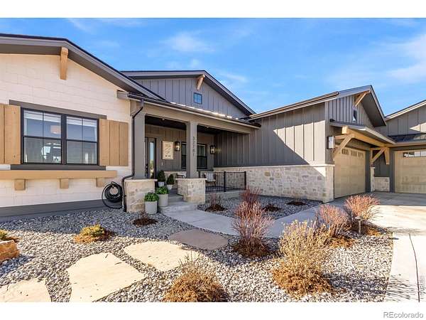 Experience contemporary farmhouse living with Colorado charm in the premier gated Eagle View Farms at Seeley Lake. Situated on just under 2 acres with expansive mountain views, this custom home offers flexible living spaces and high-end outdoor amenities. The Main level offers 2 bedrooms, a private office, a flex room, and 3 full baths. The finished walkout basement adds 2 additional bedrooms, 2 baths, a large rec room, game room, wine room, and wet bar - ideal for guests or entertaining. Outdoor living is exceptional: a spacious covered deck plus a covered lower patio featuring a custom-built-in grill, a Blackstone grill, and a pizza oven. Relax on the covered front porch, enjoy sunsets from the back patio or deck, or gather around the fire in the backyard pergola. Additional highlights include a massive heated four-car garage with an epoxy floor. No metro district taxes or fees. Don't miss this exceptional opportunity - a turnkey mountain-view home designed for entertaining, comfort, and year-round Colorado living.